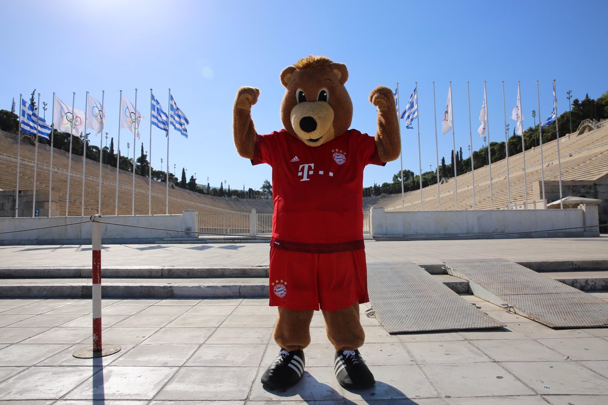 Η μασκότ της Μπάγερν Μονάχου, ο αρκούδος Μπέρνι το πρωί έπαιρνε… κάμψεις έξω από το Παναθηναϊκό Στάδιο για να είναι έτοιμος για το βραδινό αγώνα της ομάδας του με τον Ολυμπιακό, στην πρεμιέρα του Τσάμπιονς Λιγκ.