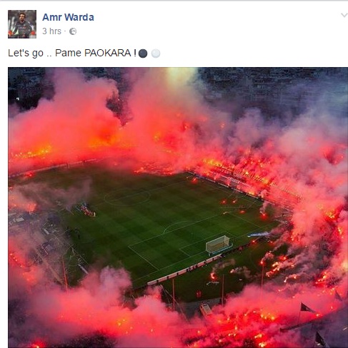 Έτοιμος για την πρώτη συμμετοχή σε ντέρμπι με την φανέλα του ΠΑΟΚ δηλώνει ο Αμρ Ουάρντα. Ο Αιγύπτιος μεσοεπιθετικός του «δικέφαλου του Βορρά» ανέβασε φωτογραφία στο facebook δίνοντας σύνθημα νίκης ενόψει Ολυμπιακού.