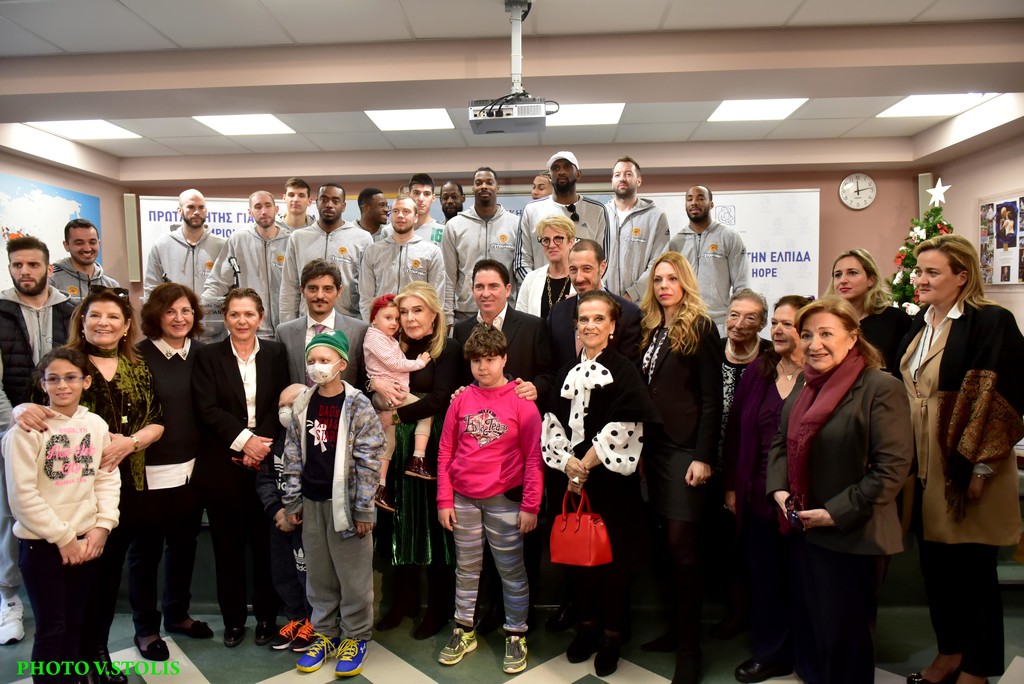 H Πρόεδρος του Συλλόγου Φίλων Παιδιών με καρκίνο Μαριάννα Β. Βαρδινογιάννη, υποδέχτηκε τον κύριο Δημήτρη Γιαννακόπουλο, τον Πρόεδρο της ομάδας κύριο Μάνο Παπαδόπουλο, τον προπονητή Τσάβι Πασκουάλ, τους παίκτες και τους παράγοντες και τους ευχαρίστησε θερμά για τη μεγάλη χαρά που δίνουν στα παιδιά με την πρωτοχρονιάτικη επίσκεψή τους, την παρουσία τους, τα δώρα και την διαρκή τους στήριξη.