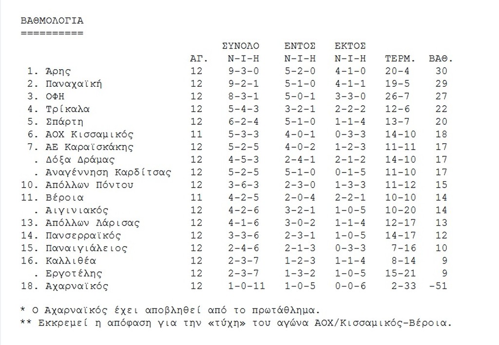Τα αποτελέσματα της 12ης αγωνιστικής της Football League: