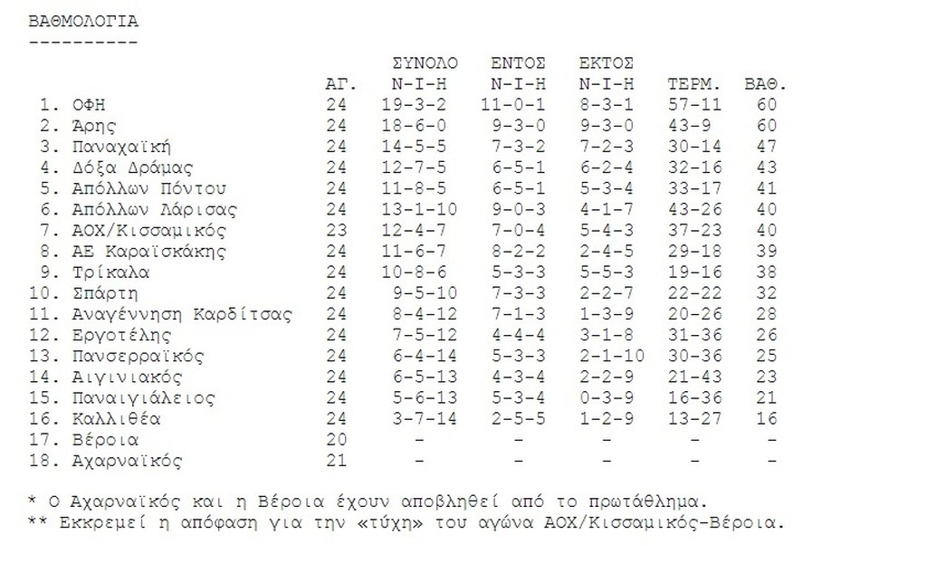 Κλείδωσε την άνοδο ο Άρης, στην Κρήτη για την πρωτιά! 01/04/2018 Μπροστά σε 15.000 οπαδούς του που δημιούργησαν τρομερή ατμόσφαιρα ο Άρης νίκησε με 1-0 τη Δόξα Δράμας για την 24η αγωνιστική της Football League. Αγκαλιά με την άνοδο στη Σούπερ Λίγκα πλέον οι κίτρινοι, αφού βρίσκονται στο +13 από την τρίτη Παναχαϊκή, έχοντας πλέον 60 βαθμούς (όσους και ο ΟΦΗ), έναντι 47 των Πατρινών. Τώρα η ομάδα του Δημήτρη Σπανού πάει για την πρωτιά στην Κρήτη αντιμετωπίζοντας την προσεχή Τετάρτη τον ΟΦΗ στο Γεντί Κουλέ, στο ντέρμπι κορυφής του πρωταθλήματος. Σημείο «κλειδί» για τη νίκη των κίτρινων, το γρήγορο γκολ, καθώς μόλις στο 5ο λεπτό ο Δεληζήσης άνοιξε το σκορ με κεφαλιά. Ο Αρης ήταν καλός στο επιθετικό κομμάτι κυρίως στο πρώτο ημίχρονο, διάστημα στο οποίο δημιούργησε πολλές φάσεις, ωστόσο μεσοαμυντικά ήταν ασταθής και κινδύνεψε σε 3-4 περιπτώσεις με ισοφάριση. Στο 5’, λοιπόν, ο Πλατέλλας εκτέλεσε κόρνερ από τα δεξιά, με τον Δεληζήση να νικάει όλη την άμυνα των Δραμινών, να προλαβαίνει την έξοδο του Βούρα και να κάνει το 1-0. Η ομάδα του Δημήτρη Σπανού έφτιαξε τουλάχιστον ακόμη 4-5 κλασικές ευκαιρίες, όμως είτε λόγω αδυναμίας στην τελική προσπάθεια, είτε λόγω των πολύ καλών επεμβάσεων του τερματοφύλακα Βούρα δεν κατάφερε να σκοράρει περισσότερα τέρματα. Συγκεκριμένα οι κίτρινοι απείλησαν στο 11’ (κεφαλιά Δεληζήση), στο 17’ (σουτ Διαμαντόπουλου), στο 27’ (σουτ Πλατέλλα), στο 29’ (διπλή φάση με σουτ των Διαμαντόπουλου, Πλατέλλα), στο 32’ (τετ α τετ Διαμαντόπουλου) και στο 41’ (σουτ Διαμαντόπουλου). Από την πλευρά της η Δόξα κατάφερε να γίνει απειλητική στα τελευταία λεπτά του ημιχρόνου, έχοντας δύο καλές στιγμές. Η μία στο 42’ με τον Κουσκουνά (απομάκρυνε ο Σόουζα) και η δεύτερη στο 43’ που ήταν και η πιο μεγάλη, με τον Μπούρμπο να διώχνει με το κεφάλι την μπάλα λίγο πριν τη γραμμή, από κεφαλιά του Κουσκουνά. Στο δεύτερο μέρος ο Αρης δεν ήταν τόσο επιθετικός, δείχνοντας διάθεση να διαφυλάξει το 1-0. Αντιθέτως η Δόξα μη έχοντας να χάσει κάτι, έβγαινε μπροστά και με ηγέτη τον εξαιρετικό σήμερα Μπαϊκαρά αναστάτωσε σε 2-3 περιπτώσεις την κίτρινη άμυνα, χωρίς πάντως να καταφέρει να βρει δίχτυα. Από την πλευρά τους οι Θεσσαλονικείς είχαν δύο μεγάλες στιγμές, αυτή του 60’ με την κεφαλιά του Νίκιτς, και του 76’ με την κεφαλιά του Χαντί. Το τελικό σφύριγμα του διαιτητή Βρέσκα, βρήκε τους οπαδούς του Άρη να αποθεώνουν την ομάδα τους, φωνάζοντας συνθήματα για την επιστροφή στη Σούπερ Λίγκα. ΑΡΗΣ (Σπανός): Αναγνωστόπουλος, Μπούρμπος, Σόουζα, Δεληζήσης, Βαλεριάνος, Νίκιτς, Ιντζόγλου, Ντούνης (86’ Μπαργκάν), Πασάς (57’ Χαντί), Πλατέλλας (81’Κάσος), Διαμαντόπουλος. ΔΟΞΑ ΔΡΑΜΑΣ (Κωστένογλου): Βούρας, Σπυρόπουλος (71’ Στεφάνοβιτς), Πεταυράκης, Οστοϊτς, Ματσούκας, Γουνδουλάκης, Σιώπης, Ντιμιτρόφσκι, Μπαϊκαρά, Τζόκιτς (77’ Καπνίδης), Κουσκουνάς (64’ Κάσες). ΔΙΑΒΑΣΤΕ ΕΠΙΣΗΣ