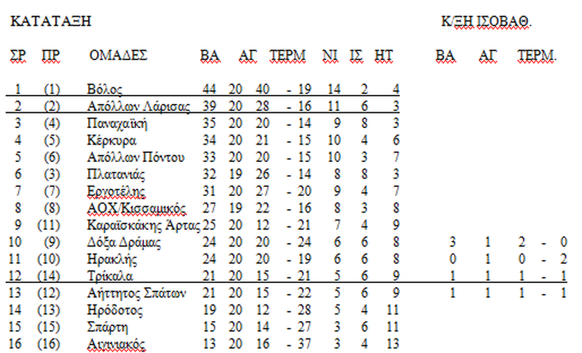 Football League: Τρίτη σερί ήττα ο πρωτοπόρος Βόλος – Αποτελέσματα και βαθμολογία 06/03/2019 Την τρίτη σερί ήττα γνώρισε ο πρωτοπόρος Βόλος ΝΠΣ. Η ομάδα της Μαγνησίας, στο πλαίσιο της 20ης αγωνιστικής, ηττήθηκε 2-0 (50` Ροβίθης, 60` Έφορντ) από τον Εργοτέλη στην Κρήτη, με αποτέλεσμα ο δεύτερος της βαθμολογίας Απόλλων Λάρισας, να μειώσει τη διαφορά στους πέντε πέντε βαθμούς, μετά και τη νίκη 1-0 (76` Μπραμπίγια) επί του Ηρακλή. Τα έως τώρα αποτελέσματα: Απόλλων Πόντου-Ηρόδοτος 3-0 Αιγινιακός-ΑΕ Καραϊσκάκης 1-2 Απόλλων Λάρισας-Ηρακλής 1-0 Δόξα Δράμας-Κέρκυρα 0-1 Εργοτέλης-Βόλος ΝΠΣ 2-0 Παναχαϊκή-Αήττητος Σπάτων 2-1 Τρίκαλα-Σπάρτη 1-0 Κισσαμικός-Πλατανιάς 7/3 ΔΙΑΒΑΣΤΕ ΕΠΙΣΗΣ