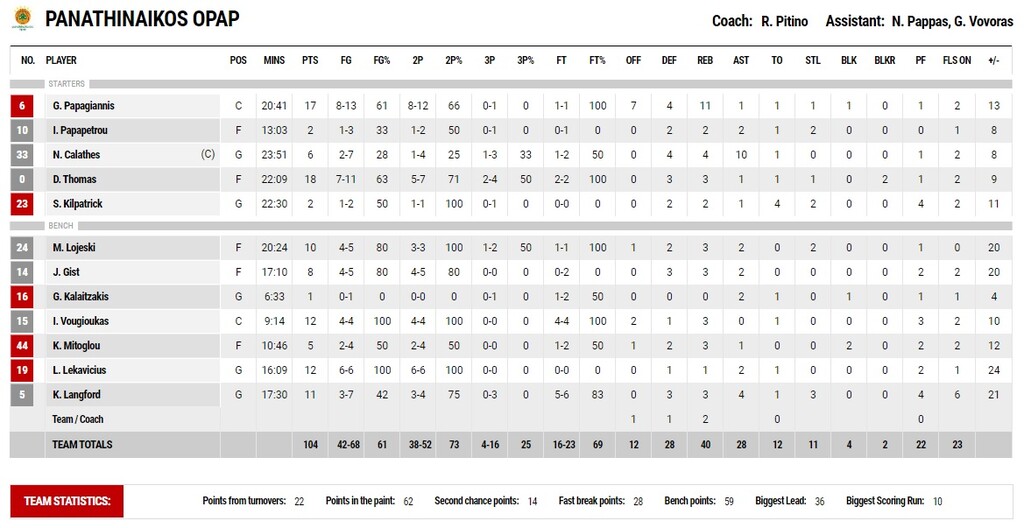 Οι «πράσινοι» ξεκίνησαν με 15/18 δίποντα κι από ένα σημείο κι έπειτα κυριάρχησαν στο «ζωγραφιστό» με τα μεγάλα κορμιά να υπερτερούν! Είναι χαρακτηριστικό ότι οι 30 από τους πρώτους 39 πόντους τους προήλθαν μέσα από τη ρακέτα, ενώ έκλεισαν το πρώτο μέρος με 20/25 δίποντα! Οι παίκτες του Πιτίνο ξεκίνησαν με 0/7 τρίποντα, αλλά είχαν 2/3 στο τελευταίο τετράλεπτο, με αποτέλεσμα να πάνε στην ανάπαυλα, έχοντας τη μεγαλύτερη διαφορά (+18, 55-37).