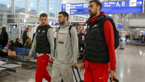 Αναχώρησε για το Μόναχο ο Ολυμπιακός – Αυτοί «σφυρίζουν» με Μπάγερν (ΦΩΤΟ) 18/11/2019 «Διαβολοβδομάδα» στην Euroleague και ο Ολυμπιακός αναχώρησε για την Γερμανία, όπου θα μείνει όλη την εβδομάδα, για να αντιμετωπίσει τις δύο γερμανικές ομάδες της διοργάνωσης. Αύριο (19/11, 21:30) οι «ερυθρόλευκοι» θα παίξουν κόντρα στην Μπάγερν, ενώ ακολουθεί το παιχνίδι της Πέμπτης (21/11) κόντρα στην Άλμπα. Το πρωί της Δευτέρας ο Κεστούτις Κεμζούρα και η ομάδα του αναχώρησαν χωρίς κάποιο πρόβλημα και άπαντες θα ήθελαν στο τέλος της εβδομάδας να επιστρέψουν με δύο νίκες στις αποσκευές τους. Δείτε εικόνες από την αναχώρηση: Ο Χουάν Κάρλος Γκαρθία (Ισπανία), ο Μιλιβόγε Γιόβτσιτς (Σερβία) και ο Ουγκ Τεπενιέ (Γαλλία) ορίστηκαν από την Ευρωλίγκα στην αναμέτρηση του Ολυμπιακού με την Μπάγερν στο Μόναχο την Τρίτη (21:30). Ο πρώτος ήταν φέτος στη μεγάλη νίκη του Ολυμπιακού επί της ΤΣΣΚΑ στην Μόσχα (79-84). Ο δεύτερος φέτος δεν έχει βρεθεί στο δρόμο των «ερυθρόλευκων», αλλά πέρσι ήταν στη νίκη επί του Παναθηναϊκού στο ΣΕΦ (79-65), αλλά και στις εντός έδρας ήττες από Μπαρτσελόνα (55-76) και Ζαλγκίρις (68-72). Ο τρίτος «σφυρίζει» για πρώτη φορά στην καριέρα του τους Πειραιώτες. Φέτος ήταν στα Μπαρτσελόνα-Άλμπα (103-84) και Αρμάνι Μιλάνο-Μπασκόνια (81-74). ΔΙΑΒΑΣΤΕ ΕΠΙΣΗΣ