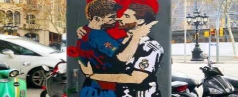 Μπαρτσελόνα – Ρεάλ: Γκράφιτι που δείχνει τους Πικέ και Ράμος να φιλιούνται σε δρόμο της Βαρκελώνης (ΦΩΤΟ) 18/12/2019 Λίγες ώρες έχουν απομείνει για το Clasico (22:00) και η ένταση του τελευταίου διαστήματος στην πρωτεύουσα της Καταλονίας υποχρέωσε τις δύο ομάδες να μείνουν στο ίδιο ξενοδοχείο και να πάνε μαζί στο “Camp Nou” για το μεγάλο ντέρμπι, σε άλλο ένα μέτρο για να ηρεμήσουν τα πνεύματα ανάμεσα σε Μπαρτσελόνα και Ρεάλ. Μάλιστα, αυτή η τάση να πέσουν οι τόνοι απηχεί και στους φιλάθλους, με έναν εξ αυτών να χρησιμοποιεί την καλλιτεχνική του φύση για να περάσει το ενωτικό του μήνυμα. Πιο συγκεκριμένα, ζωγράφισε σε τοίχο τους αρχηγούς των δύο ομάδων, Ζεράρ Πικέ και Σέρχιο Ράμος να δίνουν ένα φιλί, με μια καρδιά στο φόντο, μεταφράζοντας έτσι την ανάγκη για αγάπη ανάμεσα στους δύο συλλόγους ΔΙΑΒΑΣΤΕ ΕΠΙΣΗΣ