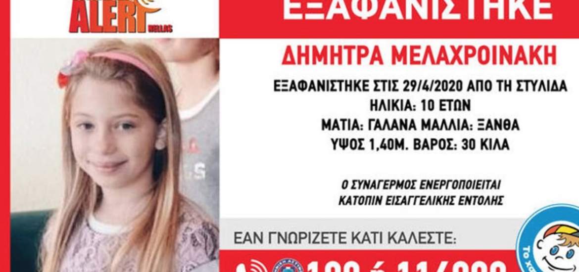 Τι κρύβεται πίσω από την εξαφάνιση της 10χρονης στη Στυλίδα 29/04/2020 Συναγερμός έχει σημάνει στη Στυλίδα Φθιώτιδας από την εξαφάνιση ενός 10χρονου κοριτσιού από ίδρυμα με τον πατέρα της ωστόσο να ρίχνει φως στο μυστήριο. «Δεν έχει εξαφανιστεί η Δήμητρα. Την έχουν οι γονείς της. Δεν θέλουμε να μπει σε ίδρυμα…», λέει ο πατέρας του 10χρονου κοριτσιού στο LamiaReport Από το πρωί της Τετάρτης 29/4/2020, δόθηκε Amber Alert από το «Χαμόγελο του Παιδιού» για την εξαφάνιση από τη Στυλίδα Φθιώτιδας της 10χρονης Δήμητρας Μελαχροινάκη. Η ενεργοποίηση του Amber Alert έγινε άμεσα κατόπιν Εισαγγελικής Εντολής, καθώς η ανήλικη εξαφανίστηκε κατά τη διάρκεια εκτέλεσης άλλης Εισαγγελικής εντολής απομάκρυνσής της από επικίνδυνο περιβάλλον. Το κορίτσι βρισκόταν για ένα διάστημα στο Ορφανοτροφείο Θηλέων, ωστόσο τον τελευταίο καιρό είχε επιστρέψει και πάλι στο οικογενειακό της περιβάλλον στη Στυλίδα από όπου και εξαφανίστηκε, σύμφωνα με τις Εισαγγελικές Αρχές. Σε επικοινωνία που είχε το LamiaReport με τον πατέρα του 10χρονου κοριτσιού, ενημέρωσε ότι η Δήμητρα είναι πολύ καλά στην υγεία της, είναι με τους γονείς της και ότι σε καμιά περίπτωση δεν θα την δώσει για να πάει πάλι στο ίδρυμα. «Το παιδί είναι με τη μάνα του και εμένα τον πατέρα της. Δεν δίνω το παιδί μου να πάει σε κανένα ίδρυμα.. Θα κάνω τα αδύνατα δυνατά να το κρατήσω μαζί μου και δε θα το πάρει κανένας…», δήλωσε ο πατέρας της Δήμητρας. ΔΙΑΒΑΣΤΕ ΕΠΙΣΗΣ