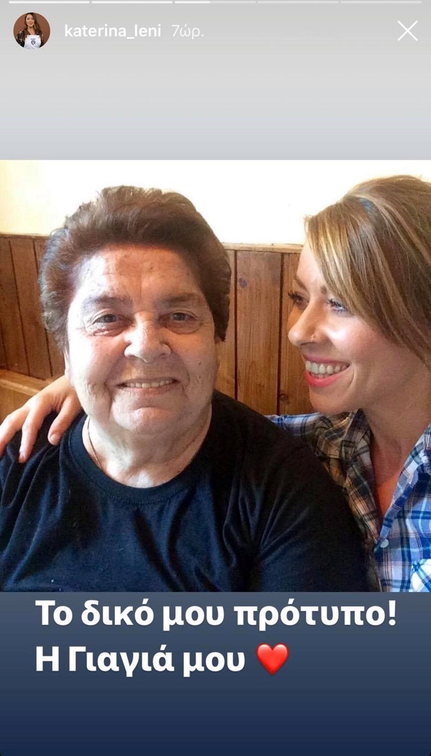 MasterChef: Η Κατερίνα Λένη μας συστήνει τη γιαγιά της! (ΦΩΤΟ) 05/05/2020 Η Κατερίνα Λένη μετά την αποχώρησή της από το MasterChef, επέστρεψε στην παλιά καθημερινότητά της, στιγμές από την οποία μοιράζεται με τους διαδικτυακούς της φίλους στο Instagram. Η πολυσυζητημένη παίκτρια του τηλεοπτικού διαγωνισμού μαγειρικής βρίσκεται στη Γερμανία, όπου κατοικεί μόνιμα και περνάει όμορφες στιγμές με τα αγαπημένα της πρόσωπα, που τόσο της έλειψαν. Ανάμεσα σε αυτά και η γιαγιά της, στην οποία φαίνεται πως έχει μεγάλη αδυναμία. Έτσι, λοιπόν, η ίδια δημοσίευσε στα instastories της μια selfie που έβγαλε μαζί της, την οποία συνόδευσε με το εξής μήνυμα: «Το δικό μου πρότυπο! Η γιαγιά μου». ΔΙΑΒΑΣΤΕ ΕΠΙΣΗΣ
