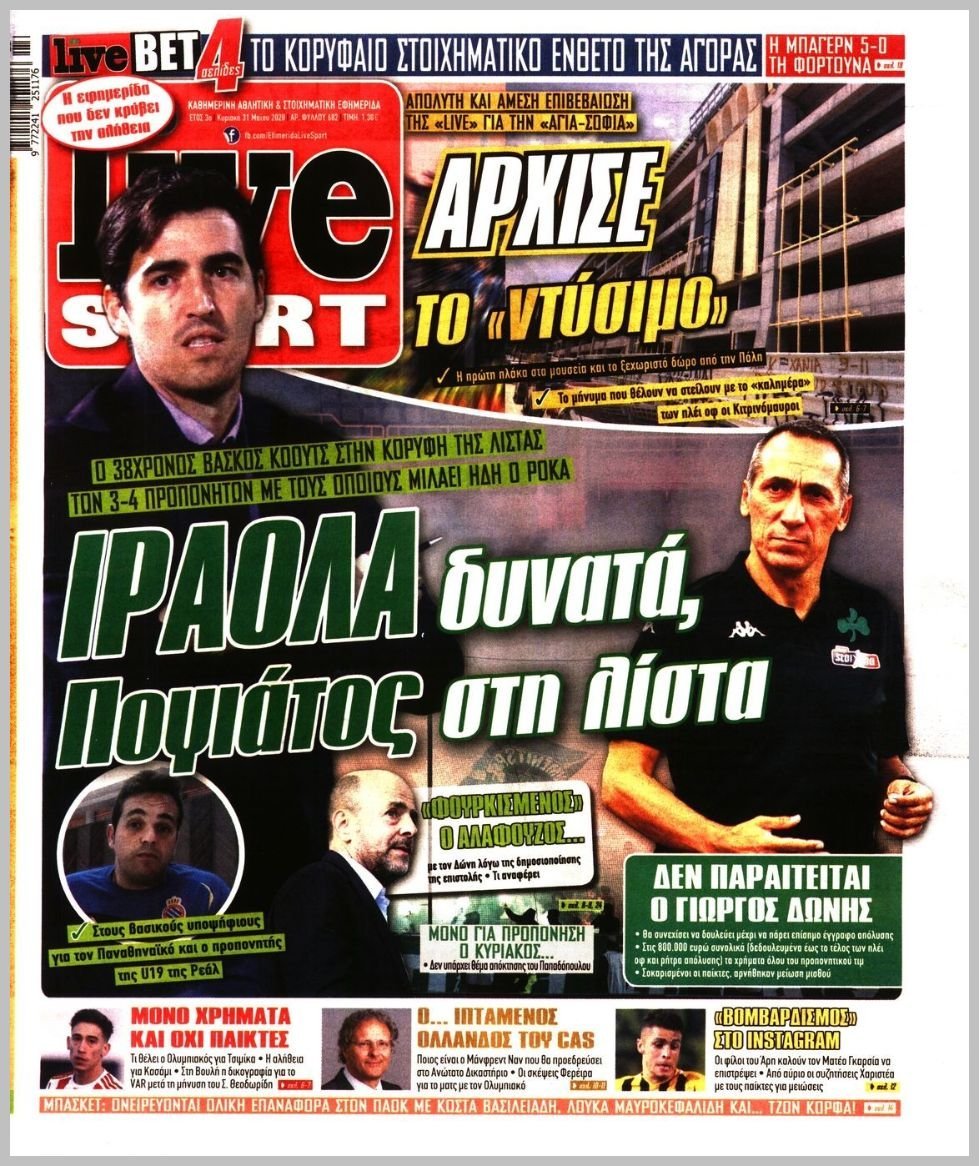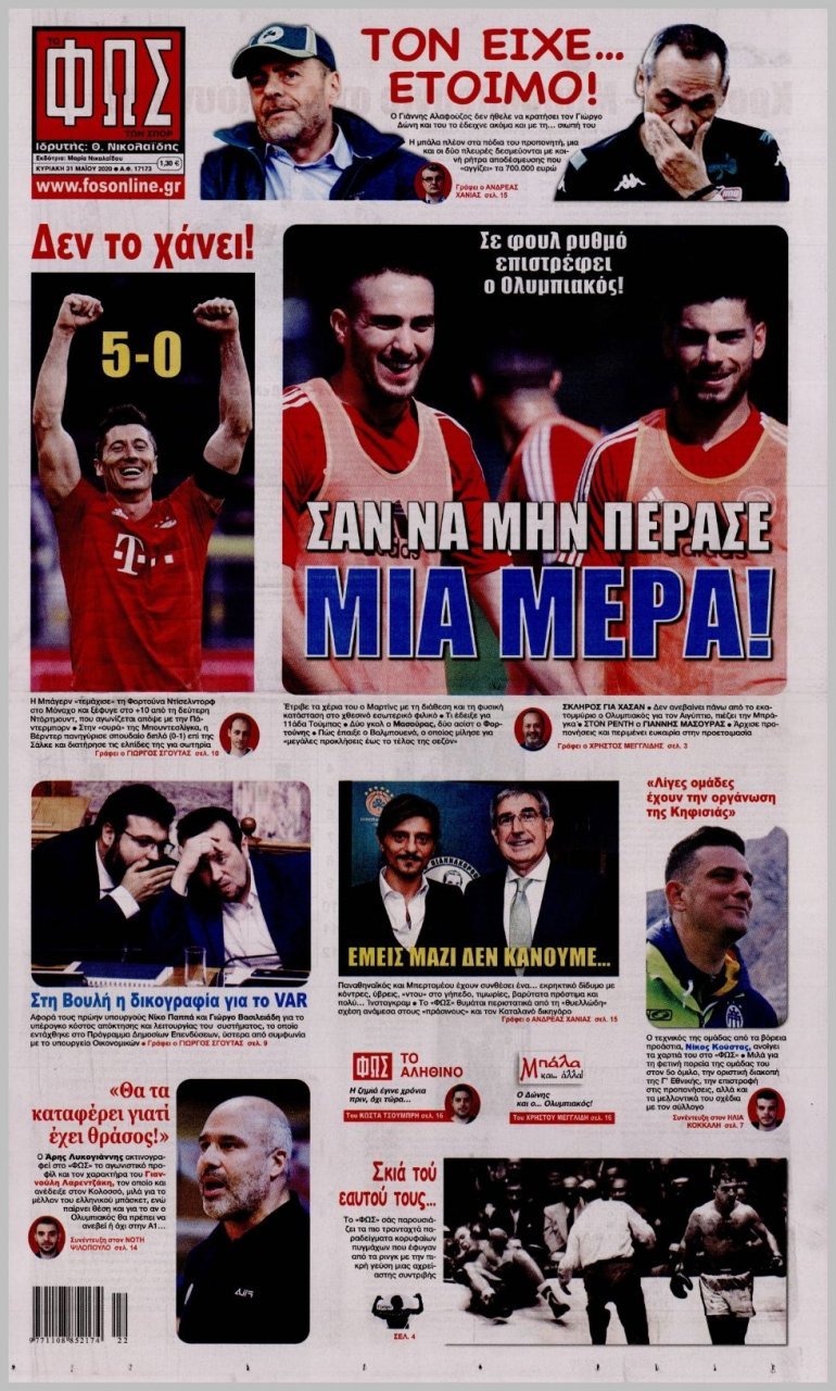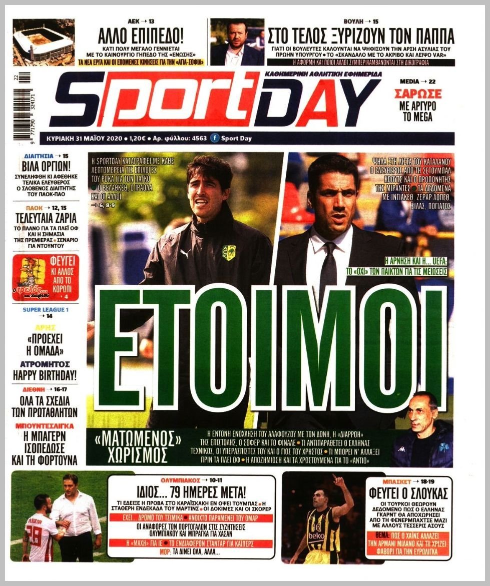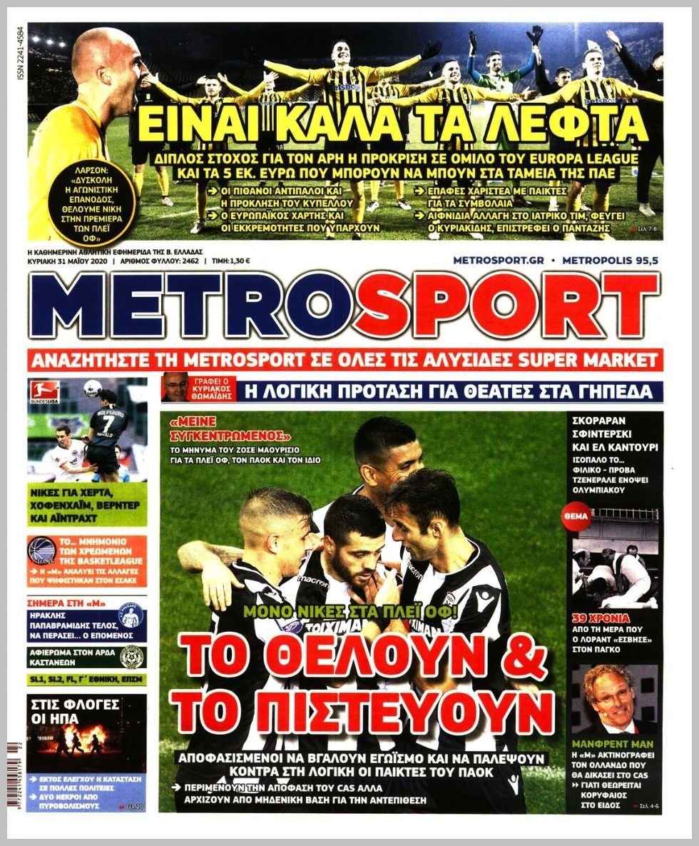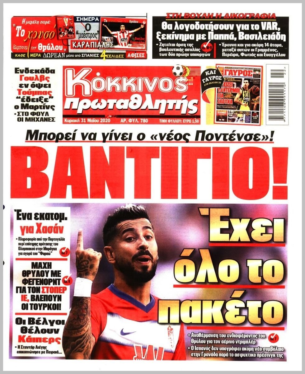 Τα πρωτοσέλιδα των αθλητικών εφημερίδων 31/05/2020 Διαβάστε τα πρωτοσέλιδα των αθλητικών εφημερίδων της Κυριακής: ΔΙΑΒΑΣΤΕ ΕΠΙΣΗΣ