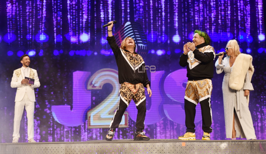 O Τρύφωνας δε σταμάτησε να γελάει σε όλη τη διάρκεια της παράστασης ενώ ο Μάρκος τον σήκωσε στη σκηνή για να τραγουδήσει! Και φυσικά ο Τρύφωνας που σήμερα θα διεκδικήσει στο show τη νίκη φορούσε τα ίδια Versace ρούχα!