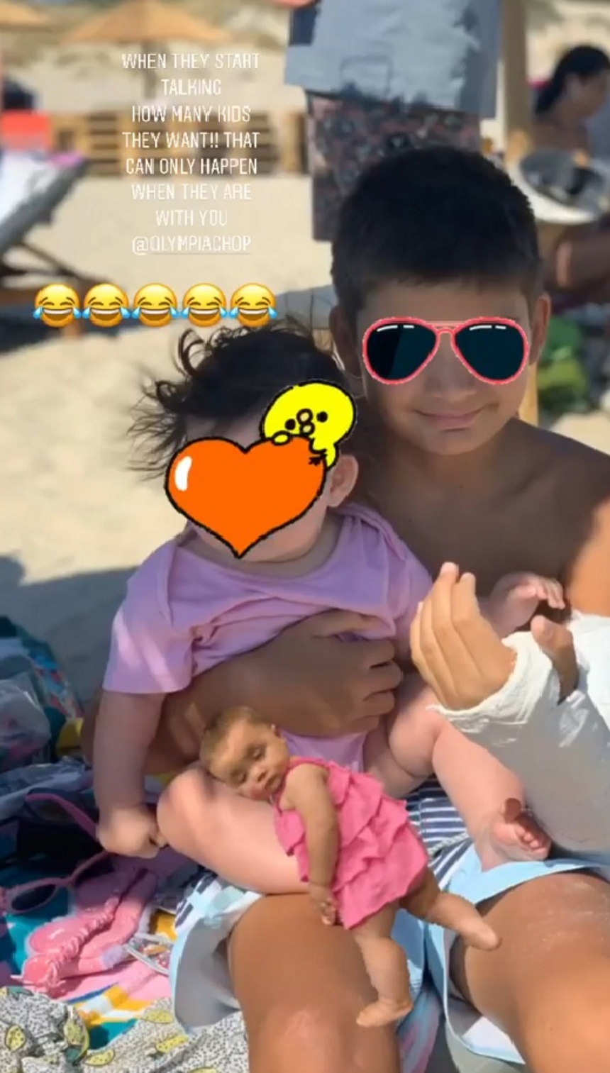 Μαζί τους βρίσκονται φυσικά τα έξι παιδιά τους – η Αιμιλία, η Αναστασία, ο Βασίλης, ο Δημήτρης, ο Θανάσης και η μπέμπα – αλλά και καλοί τους φίλοι με τα δικά τους παιδιά. Εντύπωση έκανε η φωτογραφία που ανέβασε καλή φίλη της Ολυμπίας, η οποία δείχνει την μητέρα έξι παιδιών να βγαίνει από τη θάλασσα, πιο όμορφη και αδύνατη από ποτέ! Η Ολυμπία Χοψονίδου φαίνεται πως έχει χάσει τα κιλά και της έκτης εγκυμοσύνης της και έχει επανέλθει στις άψογες αναλογίες της.