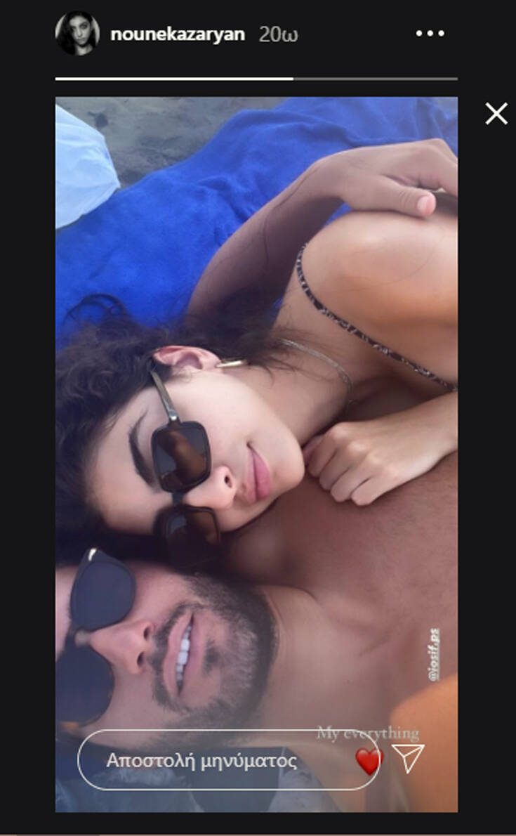 Τώρα μια τρυφερή φωτογραφία που ανέβασε η ίδια στα στόρι στο λογαριασμό της στο Instagram, όπου ποζάρει στην αγκαλιά του Ιωσήφ Ψωμά και το σχόλιο που τη συνόδευσε, «My Everything», δεν αφήνει πολλά περιθώρια για να καταλάβει κάποιος πως πρόκειται για το νέο της σύντροφο. Και αν ισχύει αυτό, τότε είναι η πρώτη φορά που δημοσιεύει μία τόσο προσωπική στιγμή.