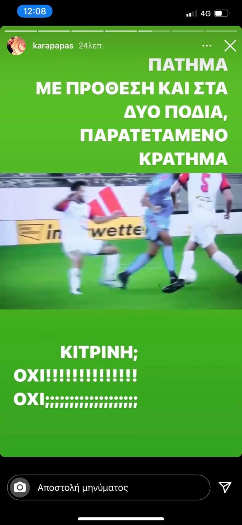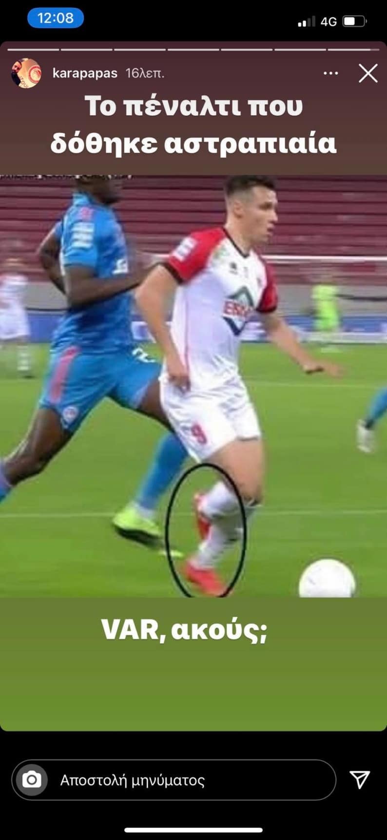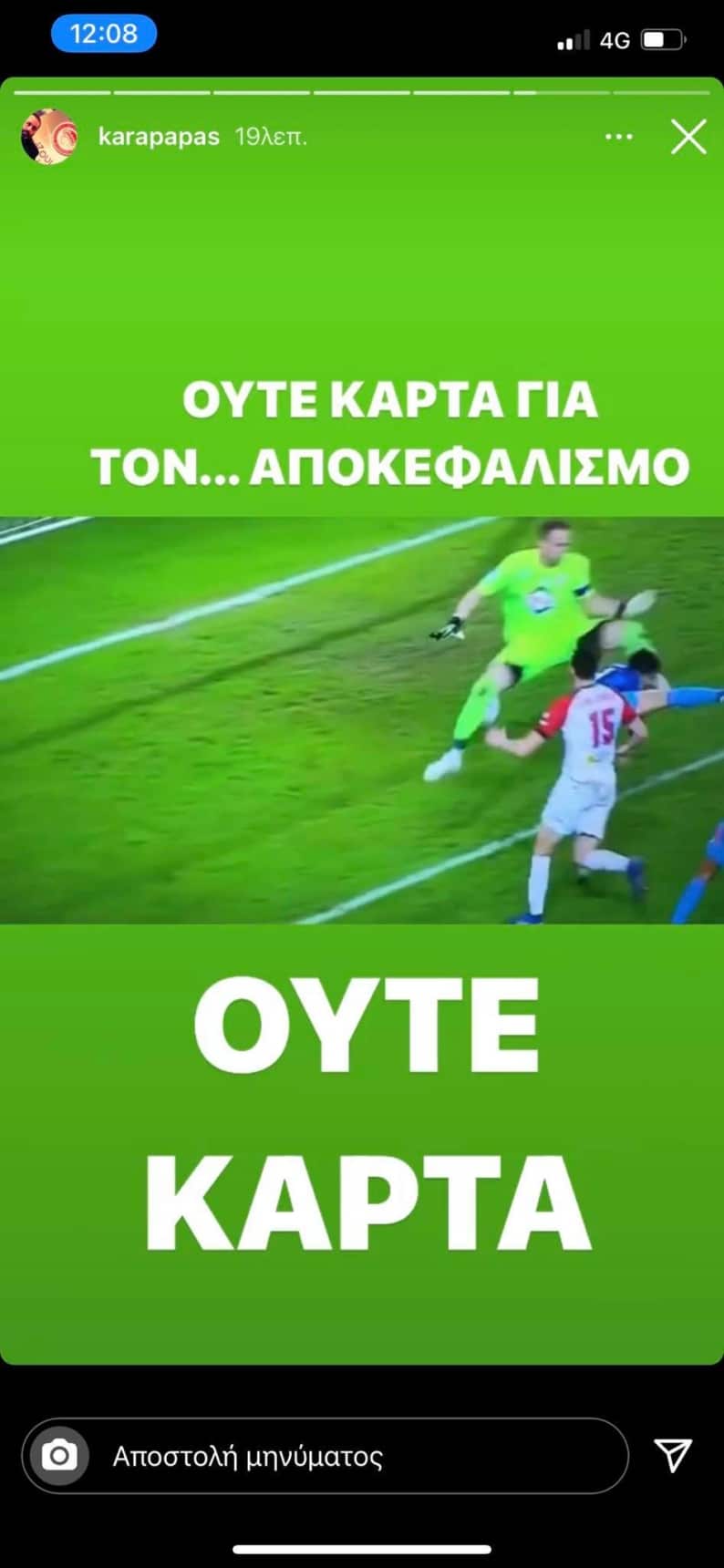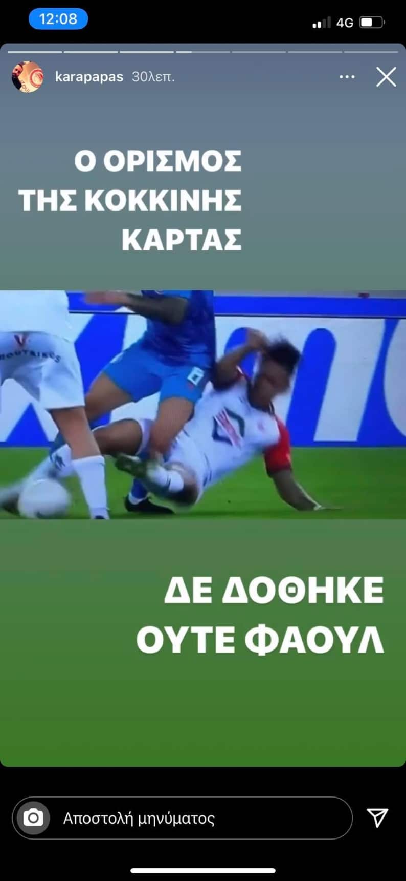 Ξέσπασμα Καραπαπά για τη διαιτησία στο ματς με τον Βόλο (ΦΩΤΟ) 06/12/2020 Τις αμφισβητούμενες φάσεις στη νίκη (4-1) του Ολυμπιακού με τον Βόλο σχολίασε με τον δικό του καυστικό τρόπο ο γ’ αντιπρόεδρος της πειραϊκής ΠΑΕ, Κώστας Καραπαπάς, μέσω στόρι στον προσωπικό του λογαριασμό στο instagram. Δείτε τις αναρτήσεις του Καραπαπά: ΔΙΑΒΑΣΤΕ ΕΠΙΣΗΣ