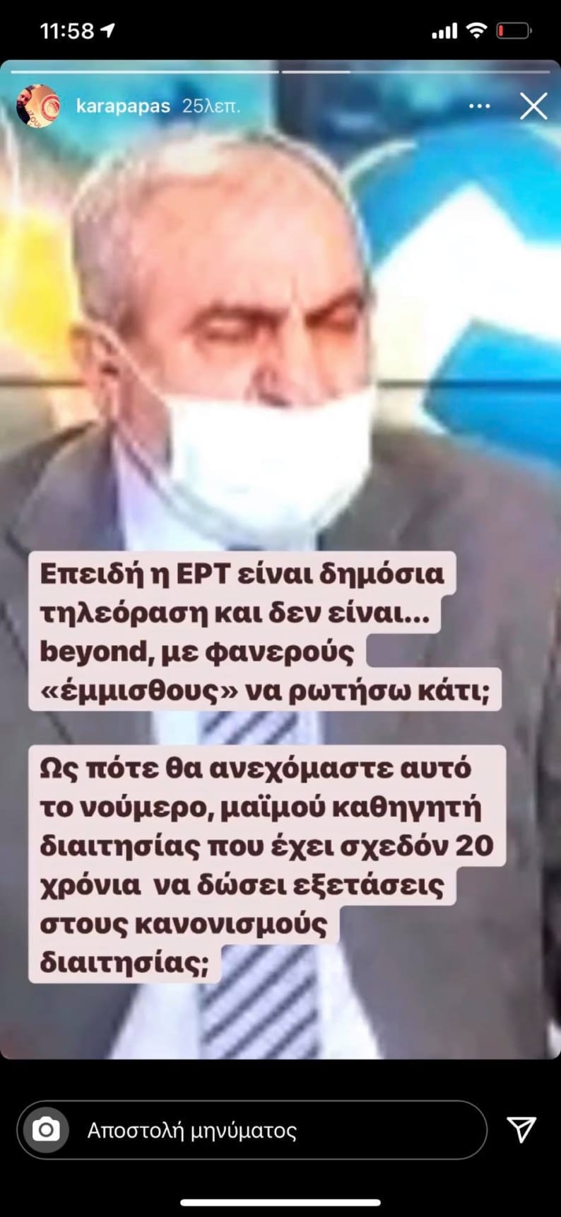 Καραπαπάς: «Ως ποτέ θα ανεχόμαστε αυτό το νούμερο διαιτησίας;» (ΦΩΤΟ) 21/12/2020 Καυστική ανάρτηση στο instagram, με αφορμή τα λεγόμενα του Παναγιώτη Βαρούχα στην «Αθλητική Κυριακή» για τις αμφισβητούμενες διαιτητικές φάσεις στο ΠΑΟΚ-Παναθηναϊκός, έκανε χθες το βράδυ ο αντιπρόεδρος της ΠΑΕ Ολυμπιακός, Κώστας Καραπαπάς. Δείτε το στόρι του Καραπαπά: ΔΙΑΒΑΣΤΕ ΕΠΙΣΗΣ