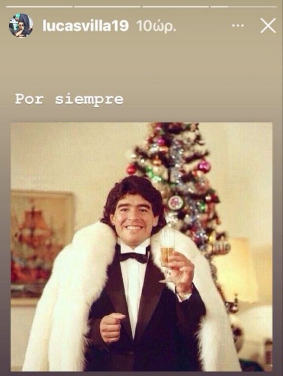 Μια φωτογραφία του Ντιέγκο Μαραντόνα να φορά τα καλά του μπροστά από ένα Χριστουγεννιάτικο δέντρο χαμογελαστός και να σηκώνει το ποτήρι με την σαμπάνια για να ευχηθεί σε όλο τον κόσμο. Ο «Βίγια» συμπλήρωσε τη φωτογραφία γράφοντας «Por siempre» που σημαίνει «για πάντα»!