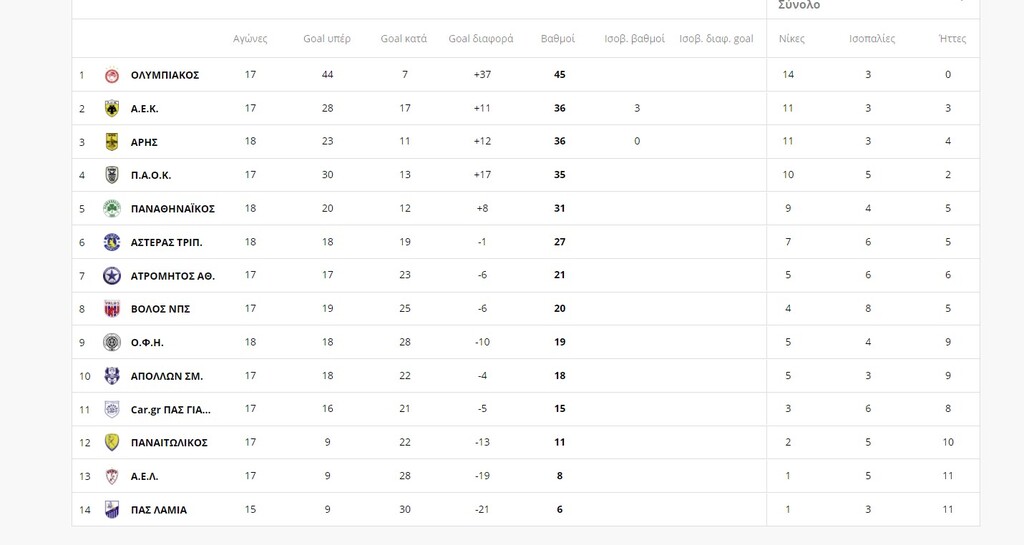 Αναλυτικά το πρόγραμμα και η βαθμολογία: