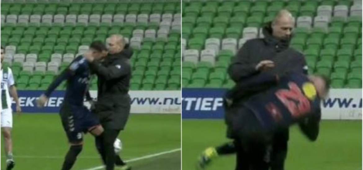 Λίγα δευτερόλεπτα πριν ολοκληρωθεί το ματς της Γκρόνινγκεν με την Έμεν για την Eredivisie και με το σκορ στο 1-1, άναψαν για τα καλά τα… αίματα, με υπαίτιο τον προπονητή των γηπεδούχων. Ο λόγος για τον Ντάνι Μπάους, ο οποίος σε μία εντελώς θερμόαιμη αντίδραση, πήρε τη μπάλα από τον παίκτη των φιλοξενούμενων που πήγαινε να εκτελέσει το πλάγιο και στη συνέχεια τον «ξάπλωσε» στο έδαφος με κεφαλοκλείδωμα!