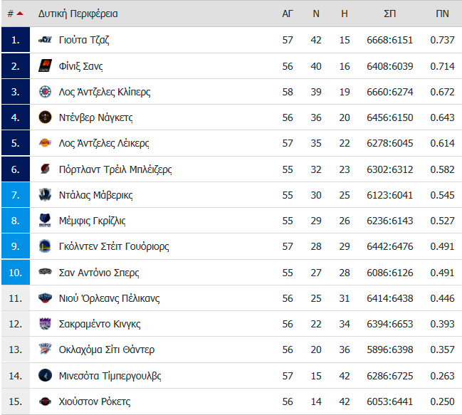 ΒΙΝΤΕΟ: Δεν έφτανε ο παραλίγο… τριπλός Γιάννης για τους Μπακς – Αποτελέσματα και κατάταξη στο NBA 18/04/2021 Οι φορμαρισμένοι Γκρίζλις μετά τους Μπουλς στο Σικάγο κέρδισαν και στο Μιλγουόκι, 128-115 τους Μπακς. Ο Γιάννης Αντετοκούνμπο άγγιξε το triple double έχοντας 28 πόντους (8/12 βολές, 10/15 δίποντα, 0/3 τρίποντα), 11 ριμπάουντ, 8 ασίστ και 9 λάθη σε 29 λεπτά, αλλά αυτό δεν αρκούσε. Το Μέμφις, που είναι όγδοο στη Δύση (29-26), είχε έξι παίκτες με διψήφιο αριθμό πόντων και κορυφαίο τον Γκρέισον Άλεν με 26 πόντους και 7/10 τρίποντα. Για τα «ελάφια», που είναι στο 35-21 και τρίτα στην Ανατολή, ο Μπριν Φορμπς είχε 19 πόντους, ενώ οι Μπρουκ Λόπεζ και Τζρου Χόλιντεϊ από 17, με τον Κρις Μίντλετον να μετρά 16 πόντους και 10 ασίστ. Ο Θανάσης Αντετοκούνμπο χρησιμοποιήθηκε για ένα τρίλεπτο έχοντας 2 ριμπάουντ, 1 κλέψιμο και 1 λάθος. Στα άλλα ματς, παιχνίδι για γερά νεύρα είχαμε ανάμεσα στους Γκόλντεν Στέιτ Γουόριορς και τους Μπόστον Σέλτικς, με τους «Κέλτες» να παίρνουν τελικώς τη νίκη με 119-114. Το παιχνίδι ήταν μοναδικό, με τους Τζέισον Τέιτουμ και τον Στεφ Κάρι να έχουν μία τιτανομαχία, με τον πρώτο να σκοράρει 44 πόντους και τον δεύτερο να σταματάει στους 47 πόντους. Η ομάδα της Βοστόνης όμως είχε και τον Γουόκερ σε πολύ καλή βραδιά, ο οποίος σημείωσε 26 πόντους και μάζεψε 8 ριμπάουντ. Για τους «πολεμιστές» ο Γουίγκινς σκόραρε 22 πόντους, ωστόσο δεν ήταν αρκετή η βοήθεια που είχε ο Κάρι για να αλλάξει τελικώς το αποτέλεσμα. Από κει και πέρα, οι Σαν Αντόνιο Σπερς διέλυσαν 111-85 τους Σανς, με τον Γκέι να έχει 19 πόντους και τον Τζόνσον να σταματάει στους 17. Από την άλλη, ο Μπούκερ κυμάνθηκε χαμηλά με 15 πόντους, ενώ και ο Κρις Πολ δεν ήταν καθόλου καλός έχοντας μόνο 6 πόντους. Τέλος, άνετη νίκη πέτυχαν και οι Σικάγο Μπουλς νίκησαν 106-96 τους Καβαλίερς με τον Βούτσεβιτς να έχει 25 πόντους με 7 ριμπάουντ και τον Κόμπι Γουάιτ να έχει 8 πόντους, αλλά μοίρασε και 9 ασίστ. Ενώ για τους Καβαλίερς, ο Σέξτον είχε 22 πόντους, ενώ στα ίδια επίπεδα βρέθηκε ο Γκάρλαντ με 22 πόντους και 12 τελικές πάσες. Στα ματς που διεξήχθησαν τα ξημερώματα της Κυριακής (18/4) για την κανονική περίοδο του NBA, σημειώθηκαν τα εξής αποτελέσματα: ΛΕΪΚΕΡΣ – ΤΖΑΖ 127-115 (παρ.) ΤΑ ΔΩΔΕΚΑΛΕΠΤΑ: 34-35, 65-62, 94-82, 110-110, 127-115 ΟΥΙΖΑΡΝΤΣ – ΠΙΣΤΟΝΣ 121-100 ΤΑ ΔΩΔΕΚΑΛΕΠΤΑ: 27-27, 61-55, 93-80, 121-100 ΜΠΟΥΛΣ – ΚΑΒΑΛΙΕΡΣ 106-96 ΤΑ ΔΩΔΕΚΑΛΕΠΤΑ: 29-24, 47-49, 80-70, 106-96 ΣΕΛΤΙΚΣ – ΟΥΟΡΙΟΡΣ 119-114 ΤΑ ΔΩΔΕΚΑΛΕΠΤΑ: 24-33, 60-66, 89-89, 119-114 ΜΠΑΚΣ – ΓΚΡΙΖΛΙΣ 115-128 ΤΑ ΔΩΔΕΚΑΛΕΠΤΑ: 31-35, 59-69, 89-100, 115-128 ΣΑΝΣ – ΣΠΕΡΣ 85-111 ΤΑ ΔΩΔΕΚΑΛΕΠΤΑ: 19-28, 45-64, 68-87, 85-111 ΒΑΘΜΟΛΟΓΙΕΣ Δύση Ανατολή ΔΙΑΒΑΣΤΕ ΕΠΙΣΗΣ