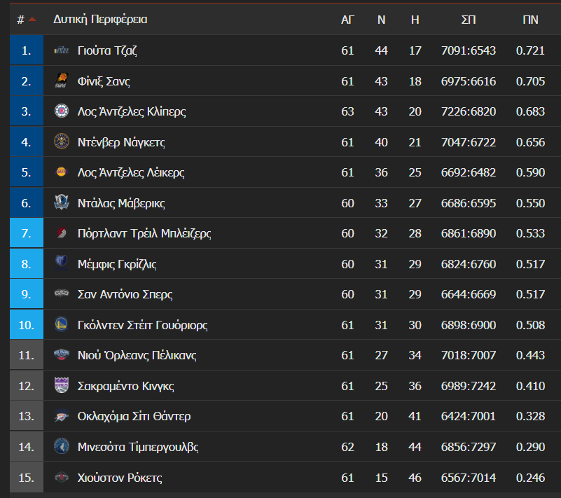 Τα δωδεκάλεπτα: 27-23, 55-44, 74-67, 100-86