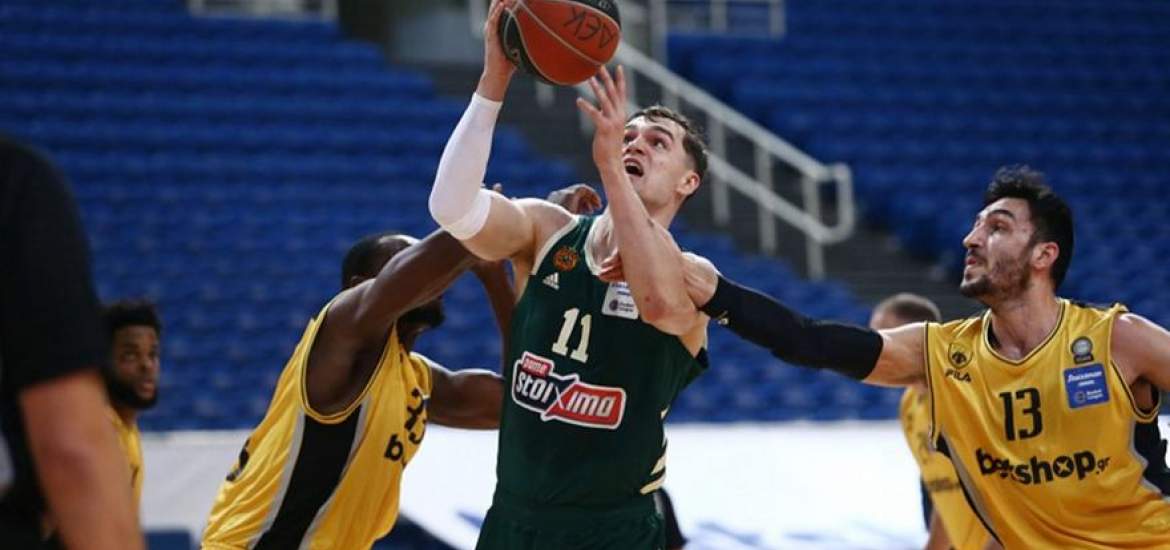 Άνετος με σούπερ Χεζόνια ο Παναθηναϊκός ΟΠΑΠ την ΑΕΚ 28/04/2021 Αυτό το ντέρμπι δεν είχε κάποια ιδιαίτερη αξία. ΑΕΚ και Παναθηναϊκός ΟΠΑΠ είχαν κλειδώσει την τέταρτη και την πρώτη θέση της κανονικής περιόδου της Basket League αντίστοιχα, οπότε το βράδυ της Τετάρτης (28/4) έπρεπε απλώς να δοκιμάσουν πρόσωπα και σχήματα εν όψει των playoffs. Ο Παναθηναϊκός πιστοποίησε την ανωτερότητά του επικρατώντας της τυπικά γηπεδούχου ΑΕΚ στην κοινή τους έδρα με 104-95. Ζορίστηκαν κατά διαστήματα στο πρώτο ημίχρονο οι «πράσινοι», που όμως ξέφυγαν και με +20 στο δεύτερο ημίχρονο. Κορυφαίος ο Μάριο Χεζόνια με 22 πόντους σε μόλις 18:31 στο παρκέ. Από κοντά για τους πρωταθλητές, που είχαν 15/28 τρίποντα, ήταν ο Ιωάννης Παπαπέτρου με 17, ο Μπεν Μπέντιλ με 14 και ο Γιώργος Παπαγιάννης με 13 πόντους. Πάλεψε στο μέτρο του δυνατού η ΑΕΚ στο ντεμπούτο του Βαγγέλη Αγγέλου, που δεν είχε διαθέσιμους τους Λάνγκφορντ και Μορέιρα (πλην των γνωστών απουσιών των Σλότερ και Ρογκαβόπουλου). Ξεχώρισαν οι Ντάριλ Μέικον με 19 και Νίκος Γκίκας με 18 πόντους. Πλέον στρέφεται στη δύσκολη σειρά των playoffs απέναντι στον ΠΑΟΚ. Οι δύο ομάδες ίσως συναντηθούν στα ημιτελικά των playoffs, εφόσον ξεπεράσουν το εμπόδιο του πρώτου γύρου. ΤΑ ΔΕΚΑΛΕΠΤΑ: 20-28, 44-50, 70-86, 95-104 ΑΕΚ (Αγγέλου): Μέικον 19 (4/6 δίποντα, 3/4 τρίποντα, 2/2 βολές), Ματσιούλις 7 (1), Ζήσης 2, Λοτζέσκι 9 (1), Κίνγκσλεϊ 7, Γιάνκοβιτς 10 (2 τρίποντα, 5 ριμπάουντ, 3 ασίστ), Κατσίβελης 7, Χρυσικόπουλος 12 (5/6 δίποντα), Γόντικας 2, Γκίκας 18 (3/3 δίποντα, 4/4 τρίποντα, 3 ριμπάουντ, 4 ασίστ), Μαυροειδής 2 ΠΑΝΑΘΗΝΑΙΚΟΣ (Κάτας): Παπαγιάννης 13 (4/8 δίποντα, 5/5 βολές), Μποχωρίδης 6 (2), Παπαπέτρου 17 (2/4 δίποντα, 4/6 τρίποντα, 1/2 βολές), Γουάιτ 5 (1 τρίποντο, 5 ριμπάουντ), Σαντ-Ρος 4 (1 τρίποντο, 6 ριμπάουντ, 3 ασίστ, 3 λάθη), Μακ 11 (4/5 δίποντα, 1/2 τρίποντα, 7 ασίστ), Όγκαστ, Χεζόνια 22 (4/7 δίποντα, 3/4 τρίποντα, 5/5 βολές), Κασελάκης 9 (1), Μήτογλου 3, Μπέντιλ 14 (3/3 δίποντα, 2/3 τρίποντα, 2/4 βολές) ΔΙΑΒΑΣΤΕ ΕΠΙΣΗΣ