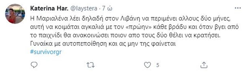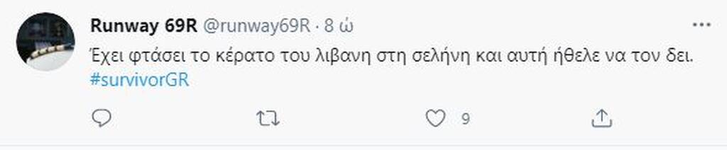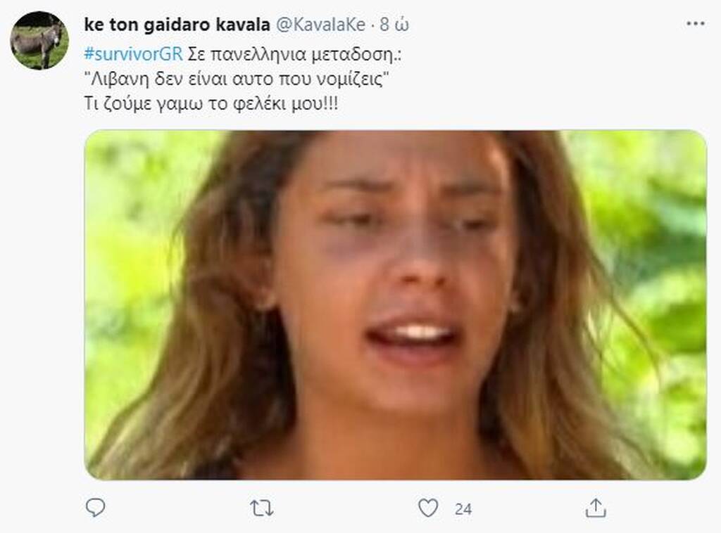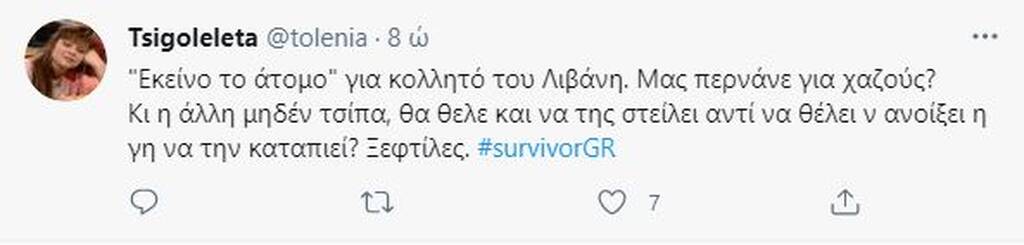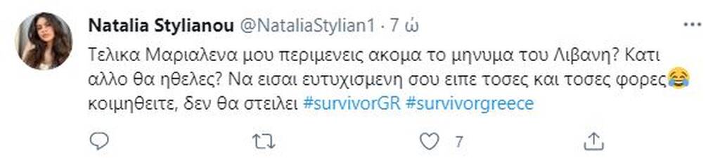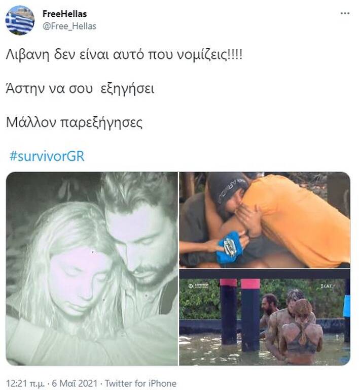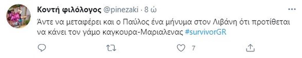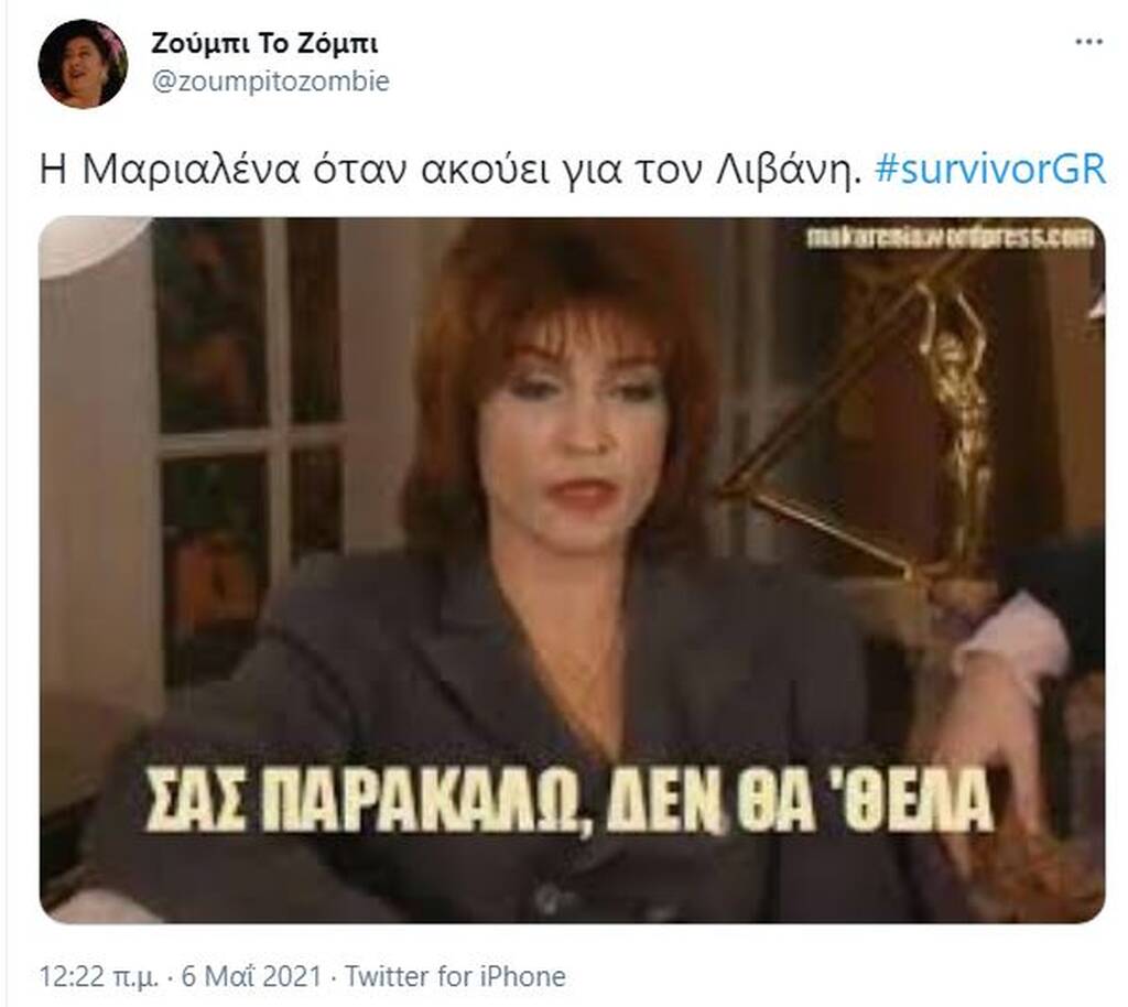 Survivor: Άγριο γλέντι στο Twitter για Μαριαλένα και Λιβάνη – «Που τα πουλάς αυτά;» (pics) 05/05/2021 Επικό… κράξιμο στη Μαριαλένα από τους χρήστες του Twitter μετά την απορία της για την απουσία μηνύματος του Γιώργου Λιβάνη. Οι «Μπλε» ήταν οι νικητές στο έπαθλο επικοινωνίας στο τελευταίο επεισόδιο του Survivor και είχαν την ευκαιρία να δουν μηνύματα από τους φίλους τους και τα αγαπημένα τους πρόσωπα. Όπως είναι λογικό, το έπαθλο κέρδισε και η Μαριαλένα που περίμενε ένα μήνυμα από τον Γιώργο Λιβάνη. Ωστόσο, η Ελληνίδα αθλήτρια δεν είδε τον νεαρό τραγουδιστή με αποτέλεσμα να στεναχωρηθεί. Όμως, δεν θέλησε να το κρατήσει για τον εαυτό της, αλλά το είπε μπροστά στις κάμερες, εκφράζοντας τον προβληματισμό της που ο Γιώργος Λιβάνης δεν θέλησε να της στείλει ένα μήνυμα στον Άγιο Δομίνικο. Μάλιστα, σύμφωνα με τα όσα υποστήριξε στην κάμερα, η σχέση της με τον Σάκη Κατσούλη έχει παρεξηγηθεί, μια και δεν υπάρχει κάτι το ερωτικό, παρά τα πλάνα που έρχονται από την παραλία του Survivor και τους δείχνει να έχουν έρθει και πάλι πάρα πολύ κοντά. Πάντως, οι ατάκες της Μαριαλένας όταν εξέφρασε την απορία της για την απουσία του μηνύματος από τον Έλληνα τραγουδιστή προκάλεσαν ένα τρομερό… γλέντι στο Twitter. ΔΙΑΒΑΣΤΕ ΕΠΙΣΗΣ