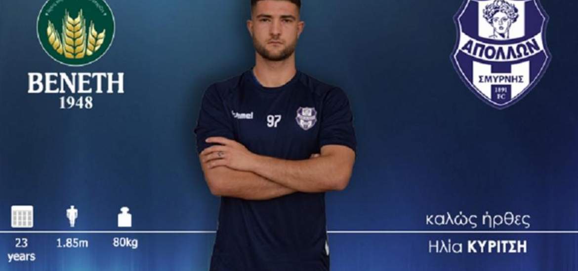 Η ΠΑΕ Απόλλων Σμύρνης ανακοινώνει την απόκτηση του ποδοσφαιριστή, Ηλία Κυρίτση. Γεννημένος στις 14 Οκτωβρίου 1997, αγωνίζεται ως τερματοφύλακας. Στο παρελθόν έχει παίξει σε Καβάλα, ΠΑΕΕ Κερύνειας, Κερατσίνι, Ιωνικό, Κηφισιά, Ατρόμητο, Άγιο Ιερόθεο.