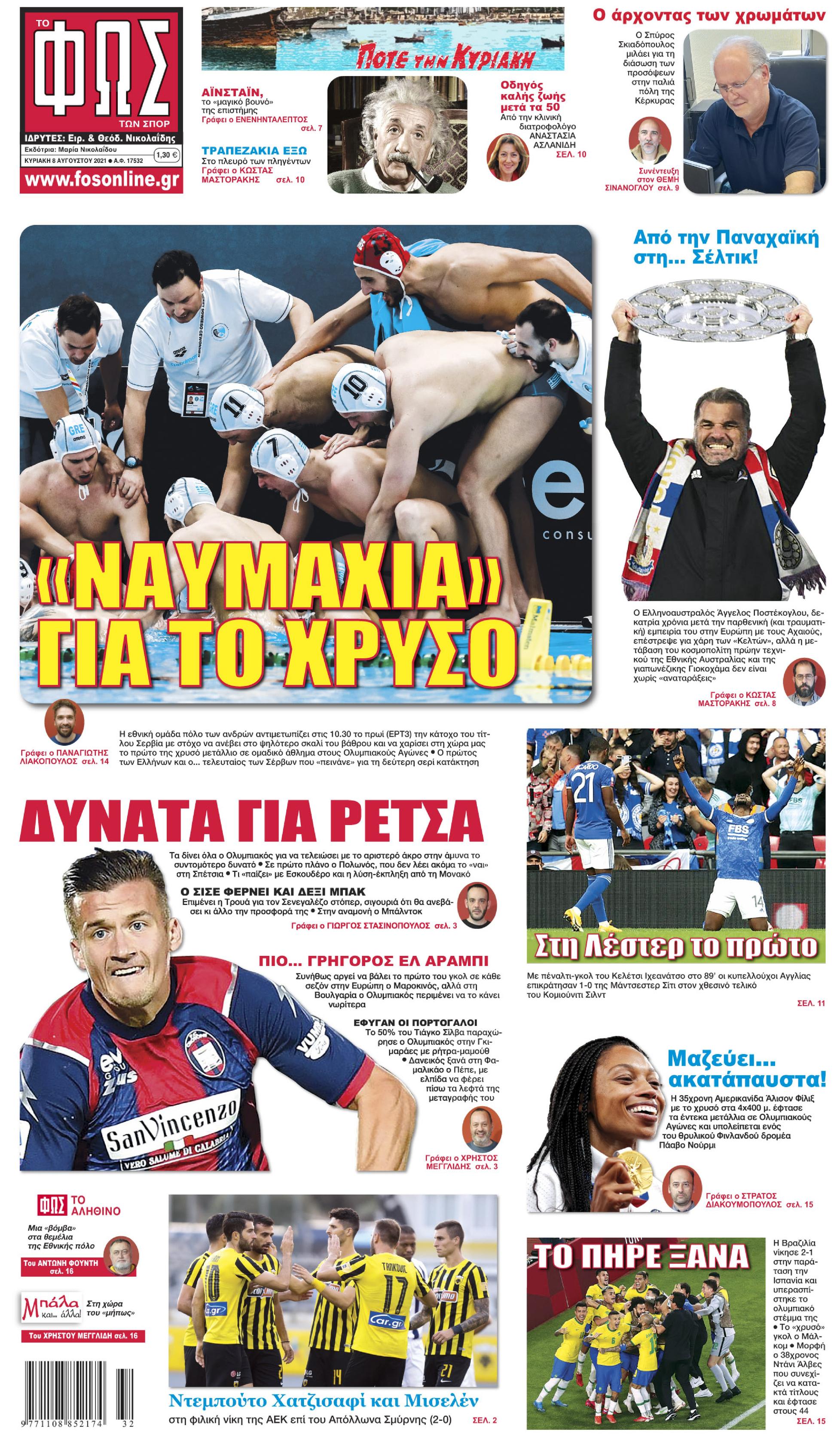 Τα πρωτοσέλιδα των αθλητικών εφημερίδων 08/08/2021 Διαβάστε τα πρωτοσέλιδα των αθλητικών εφημερίδων της Κυριακής: ΔΙΑΒΑΣΤΕ ΕΠΙΣΗΣ