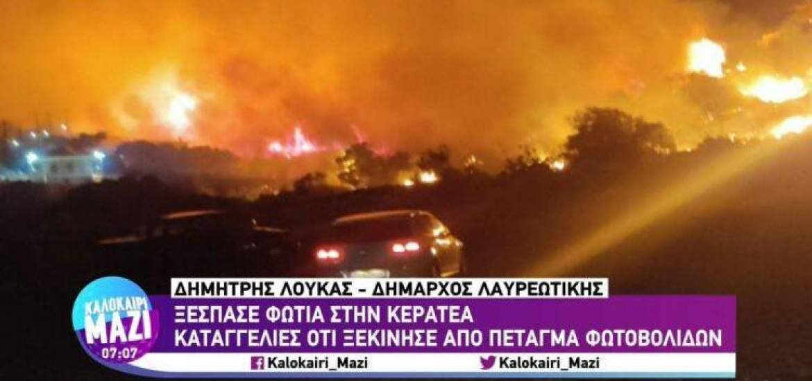 ΒΙΝΤΕΟ: Η στιγμή που ρίχνουν φωτοβολίδα και ξεκινά νέα φωτιά στην Κερατέα 20/08/2021 Τη στιγμή που ξέσπασε η φωτιά στο Δασκαλειό της Κερατέας τα ξημερώματα της Παρασκευής καταγράφει βίντεο, με τον δράστη να μην έχει ακόμα εντοπιστεί. Σύμφωνα με τον δήμαρχο Λαυρεωτικής, Δημήτρη Λουκά, έπεσαν δύο φωτοβολίδες από πιστόλι. Δείτε εδώ το σχετικό βίντεο. ΔΙΑΒΑΣΤΕ ΕΠΙΣΗΣ