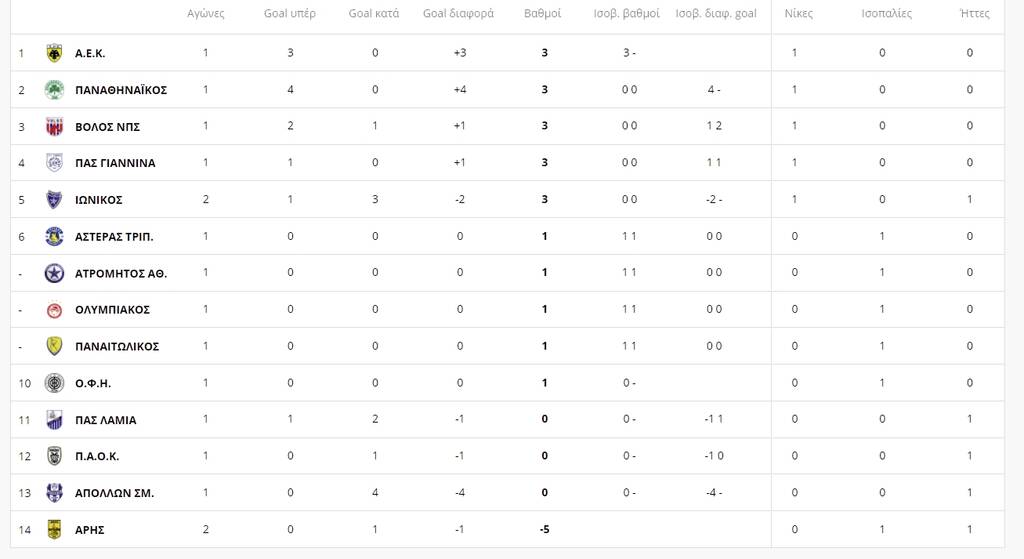 Super League 1: Καταρρέει ο Άρης – Η βαθμολογία του πρωταθλήματος (ΦΩΤΟ) 17/09/2021 Η πρώτη νίκη του Ιωνικού στη Super League 1 μετά τη σεζόν 2006-07 είναι γεγονός, καθώς επικράτησε 1-0 του Άρη στη Νεάπολη, χάρη σε εκπληκτικό πλασέ του Άοσμαν στο 86ο λεπτό. Οι Θεσσαλονικείς έμειναν στο -5, μιας και στην πρεμιέρα είχαν αναδειχθεί ισόπαλοι 0-0 με τον ΟΦΗ. Από την πλευρά της, η ομάδα του Δημήτρη Σπανού με αυτή τη νίκη ανέβηκε στους 3 βαθμούς. Δείτε τη βαθμολογία της Super League 1, καθώς επίσης και το πρόγραμμα της 2ης και 3ης αγωνιστικής: ΔΙΑΒΑΣΤΕ ΕΠΙΣΗΣ