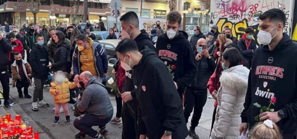 Αντιπροσωπεία της ΚΑΕ Ολυμπιακός στο σημείο που δολοφονήθηκε ο Άλκης 06/02/2022 Αντιπροσωπεία της ΚΑΕ Ολυμπιακός βρέθηκε σήμερα στο σημείο που έχασε τη ζωή του ο 19χρονος Άλκης. Αναλυτικά η ενημέρωση των «ερυθρόλευκων»: «Το απόγευμα της Κυριακής (06/02) αντιπροσωπεία της ΚΑΕ Ολυμπιακός αποτελούμενη από τον αρχηγό, Γιώργο Πρίντεζη, τον Κώστα Παπανικολάου, τον Κώστα Σλούκα, τον Σάσα Βεζένκοφ και τον Sports Director, Χρήστο Μπαφέ, βρέθηκε στο σημείο που έχασε τη ζωή του ο Άλκης και απέτισε φόρο τιμής στον αδικοχαμένο 19χρονο, αφήνοντας μια υπογεγραμμένη «ερυθρόλευκη» φανέλα με το μήνυμα «Ποτέ ξανά, Άλκης», τα παπούτσια του Κώστα Παπανικολάου, λουλούδια και αναμμένα κεριά. Η ΚΑΕ Ολυμπιακός εκφράζει τα ειλικρινή της συλλυπητήρια στην οικογένειά του Άλκη και εύχεται ολόψυχα να μην γίνουμε ποτέ ξανά μάρτυρες αντίστοιχου περιστατικού». ΔΙΑΒΑΣΤΕ ΕΠΙΣΗΣ