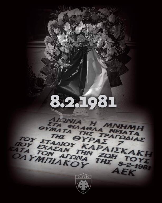 Η ΑΕΚ αναφέρει μεταξύ άλλων: «Το μήνυμα της θλιβερής επετείου της Θύρας 7 είναι σήμερα πιο επίκαιρο από ποτέ! Η μνήμη και ο σεβασμός είναι κάτι το δεδομένο και αυτονόητο, αλλά για το «ποτέ ξανά» δεν αρκούν οι ευχές! Απαιτούνται πράξεις, αλλαγή πορείας, διαφορετική φιλοσοφία! Δεν θα -σας- ξεχάσουμε ποτέ! Όχι άλλο αίμα στο ποδόσφαιρο!».