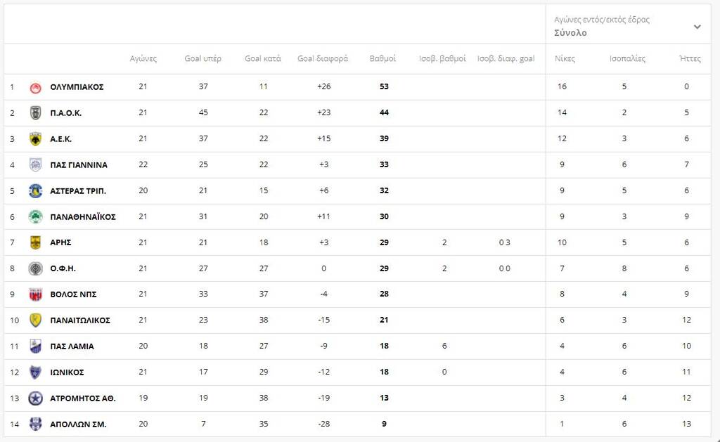 H βαθμολογία της Super League 1 10/02/2022 Σε εξ αναβολής παιχνίδι για την 21η αγωνιστική, ο Ατρόμητος επικράτησε με 3-1 της Λαμίας. Οι Περιστεριώτες αν και βρέθηκαν πίσω στο σκορ, έβγαλαν αντίδραση και έδειξαν ότι θα τα δώσουν όλα για να ξεκολλήσουν από τις τελευταίες θέσεις της βαθμολογίας της Super League 1. Η βαθμολογία της Super League 1: ΔΙΑΒΑΣΤΕ ΕΠΙΣΗΣ