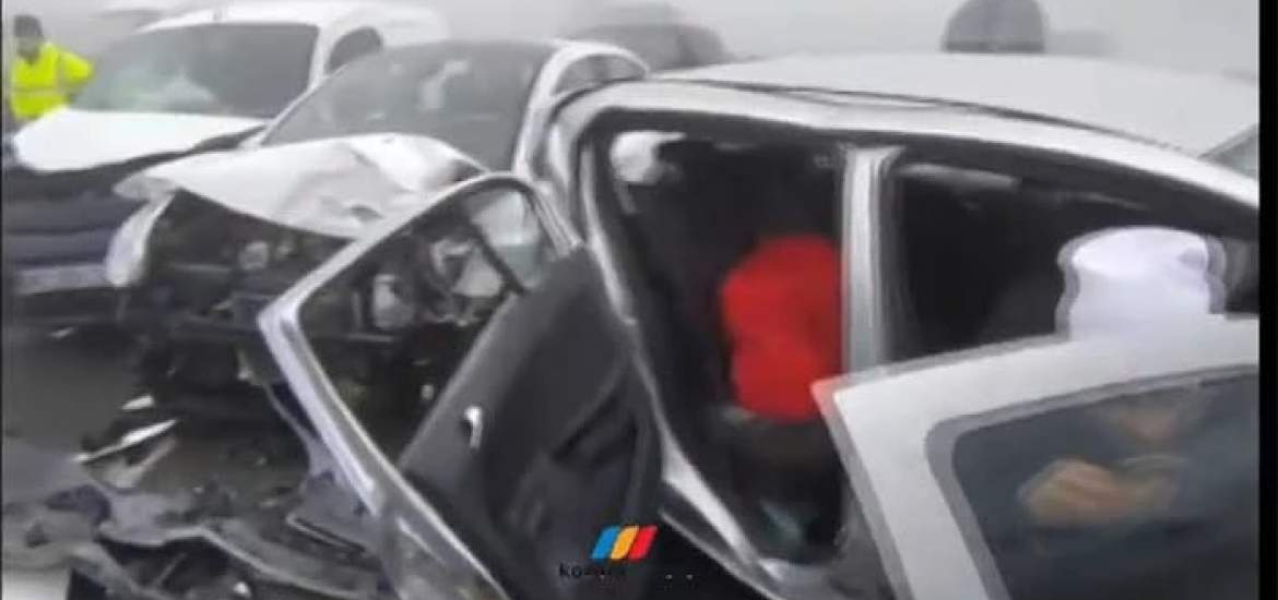 Οι πληροφορίες αναφέρουν πως το ατύχημα συμβαίνει λόγω της ομίχλης, με την ορατότητα να φαίνεται και στα βίντεο πως είναι περιορισμένη.