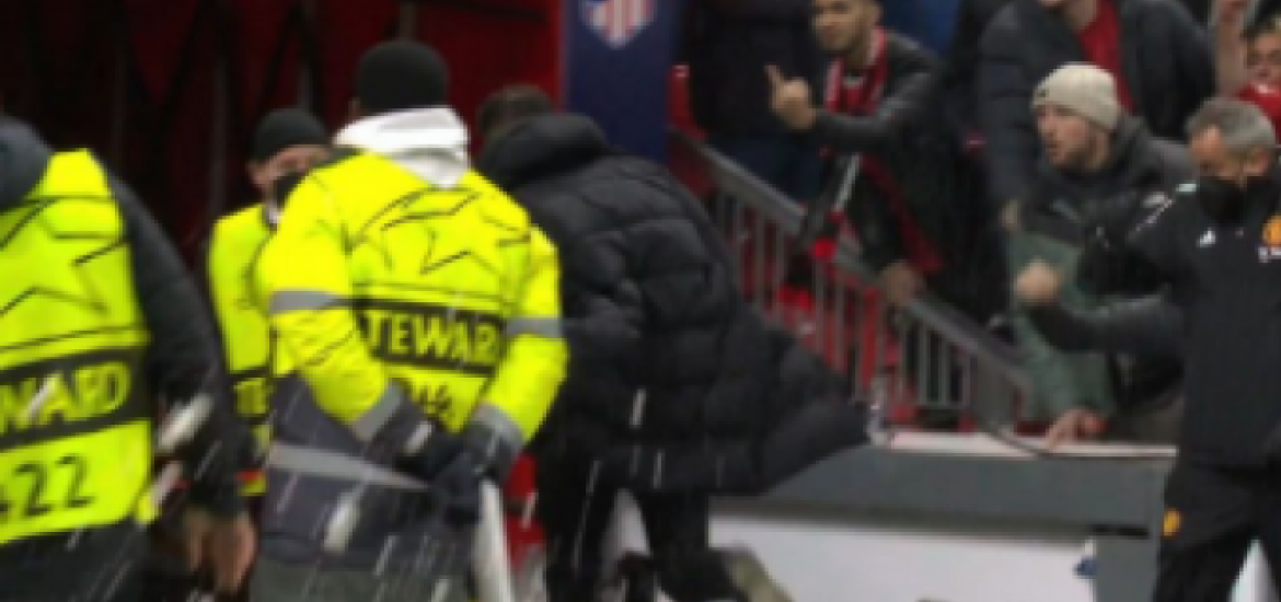Ο Ντιέγκο Σιμεόνε δεν είναι και από τα πιο αγαπητά πρόσωπα στο «Ολντ Τράφορντ». Και αυτό φάνηκε μετά το τελευταίο σφύριγμα όταν ο προπονητής της Ατλέτικο έφυγε για την φυσούνα και δέχθηκε «βροχή» αντικειμένων, τα οποία απέφυγε τρέχοντας…
