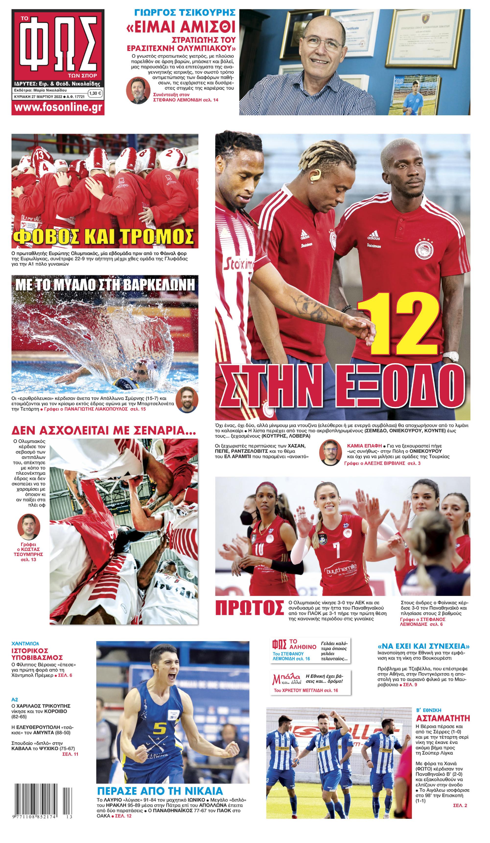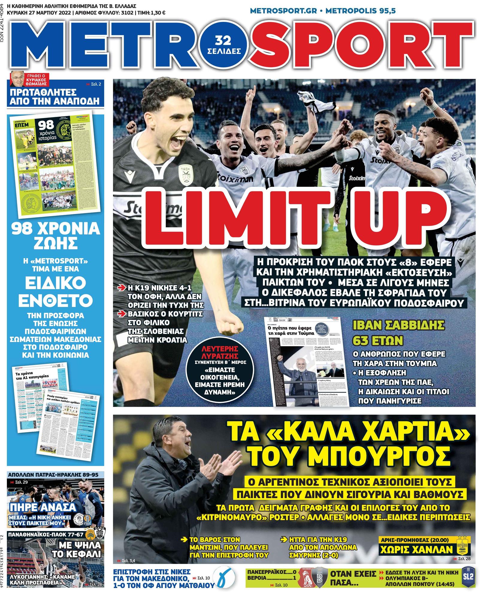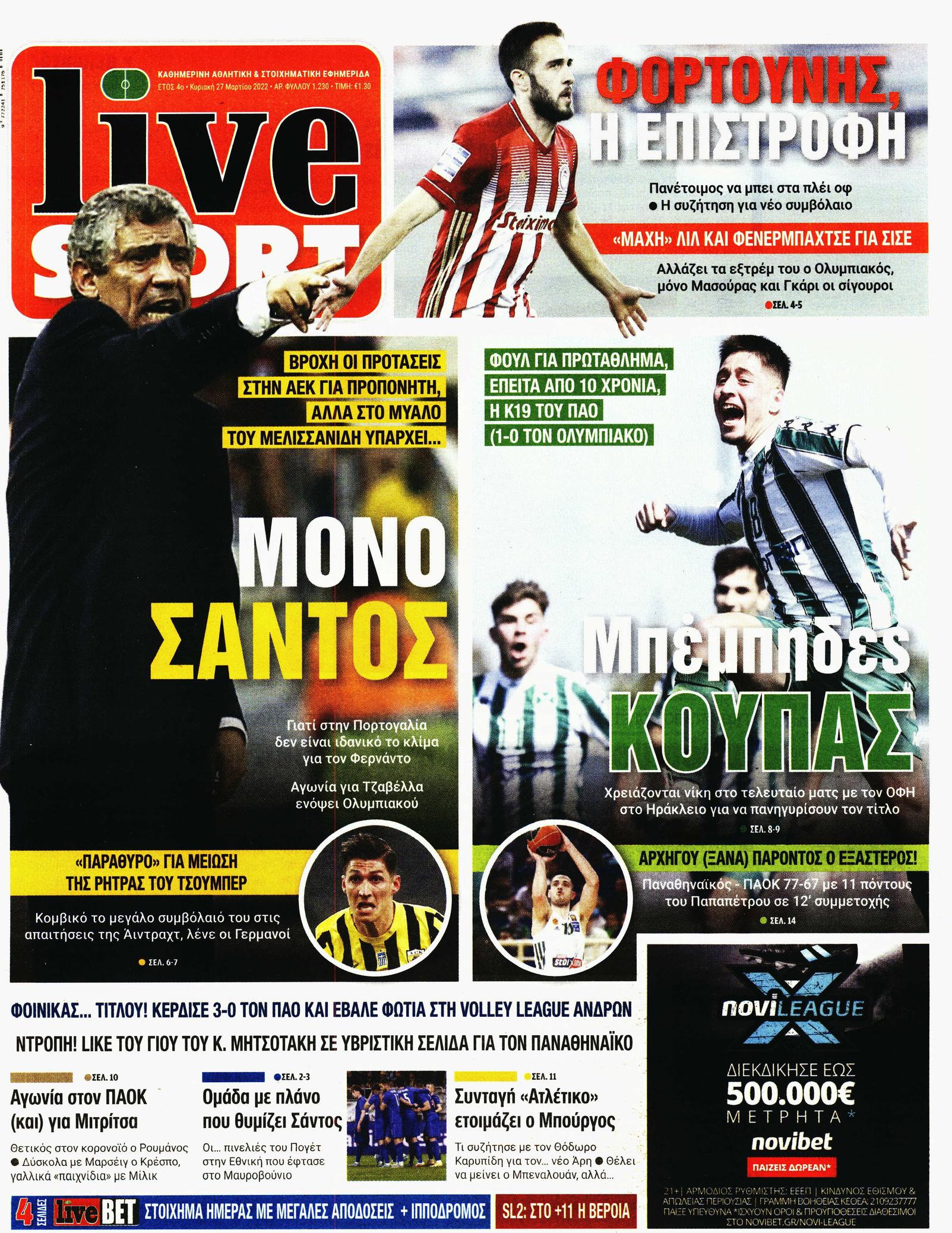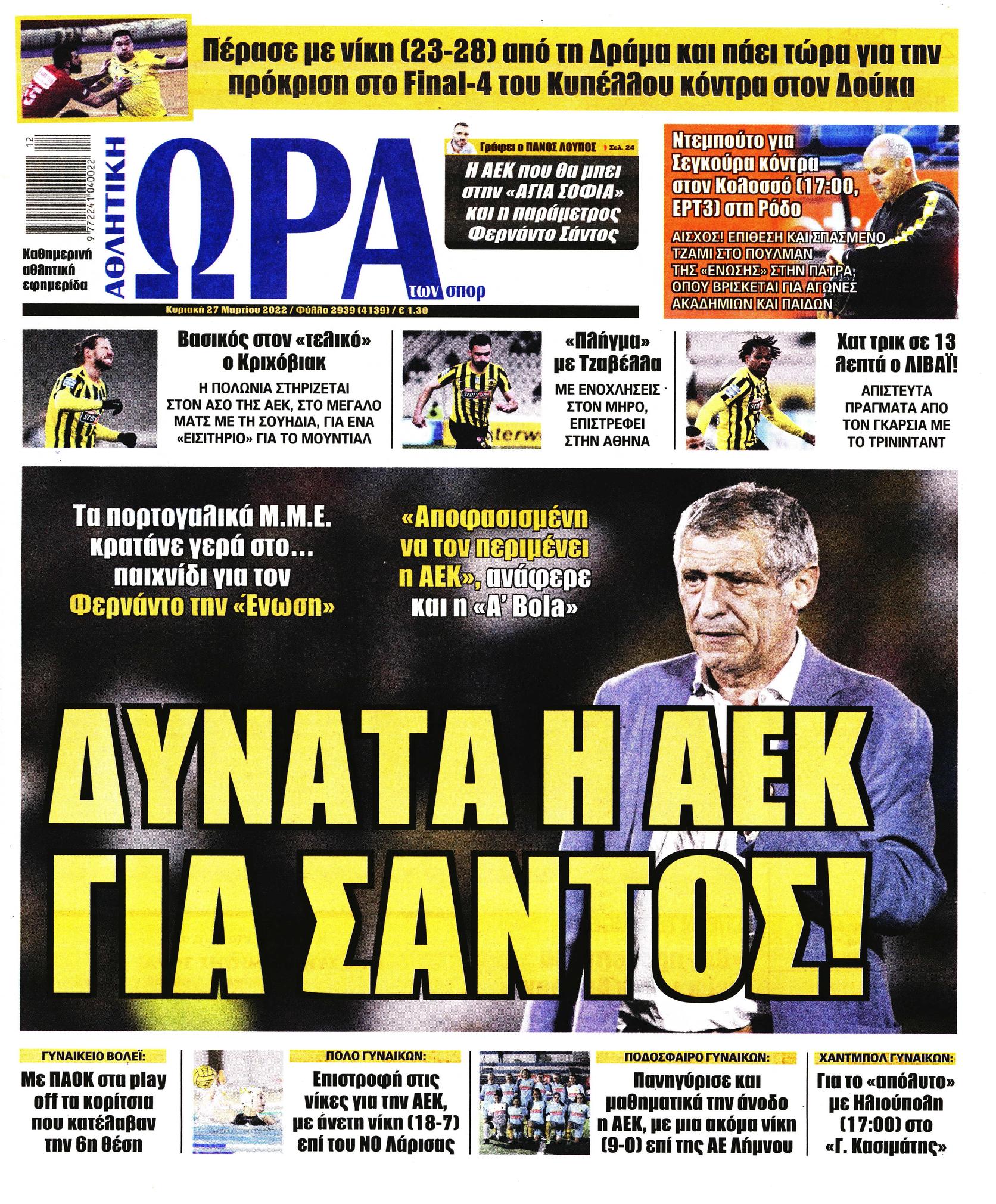 Τα πρωτοσέλιδα των αθλητικών εφημερίδων 27/03/2022 Διαβάστε τα πρωτοσέλιδα των αθλητικών εφημερίδων της Κυριακής: ΔΙΑΒΑΣΤΕ ΕΠΙΣΗΣ