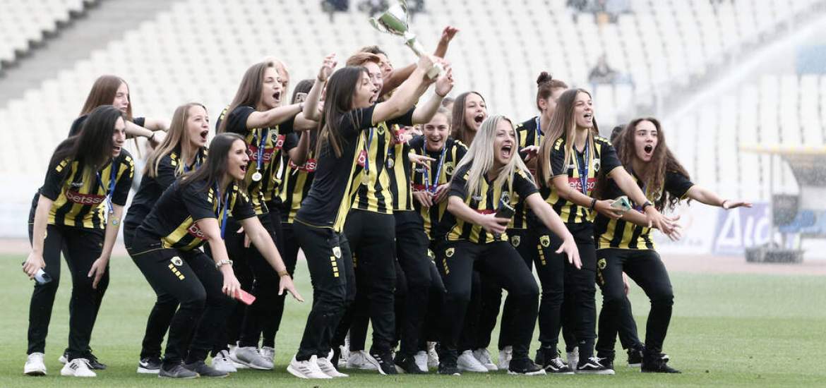 ΒΙΝΤΕΟ: «Καυτό» το ΟΑΚΑ για το ντέρμπι – Αποθεώθηκε η γυναικεία ομάδα της ΑΕΚ 08/05/2022 Η νεοσύστατη γυναικεία ομάδα της ΑΕΚ πανηγυρίζει την κατάκτηση του πρωταθλήματος στον 5ο Όμιλο της Γ’ Εθνικής. Η απονομή έγινε λίγο πριν τη σέντρα του ΑΕΚ-Παναθηναϊκός, με τους φίλους της Ένωσης να αποθεώνουν τα κορίτσια. Στο ΟΑΚΑ βρέθηκαν πάνω από 25.000 φίλοι της ΑΕΚ, που ανταποκρίθηκαν στο κάλεσμα να στηρίξουν την προσπάθεια των παικτών του Οφρυδόπουλου για το ευρωπαϊκό εισιτήριο. Οι «κιτρινόμαυρες» κατέκτησαν την 1η θέση στον όμιλό τους σημειώνοντας 8 νίκες σε ισάριθμους αγώνες. Την απονομή έκανε ο πρόεδρος της Επιτροπής Ποδοσφαίρου Γυναικών Κυριάκος Φύτρας και το μέλος της Επιτροπής Αριστέα Ρόμπολα. Το παρών στην απονομή έδωσε και ο πρόεδρος της ΠΑΕ ΑΕΚ Ευάγγελος Ασλανίδης. ΔΙΑΒΑΣΤΕ ΕΠΙΣΗΣ