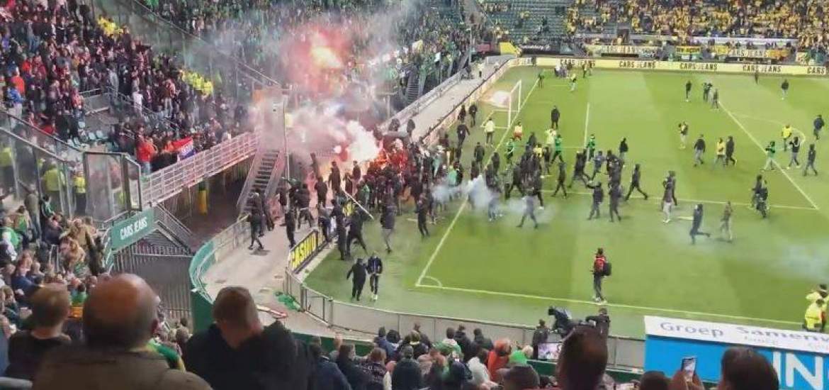 ΒΙΝΤΕΟ: Θλιβερά επεισόδια στην Ολλανδία μετά το μπαράζ ανόδου Ντεν Χάαγκ-Εξέλσιορ! 29/05/2022 Μία ματσάρα ολκής ανάμεσα στην Ντεν Χάαγκ και την Εξέλσιορ επισκιάστηκε πλήρως από την τρομακτική επίθεση των οπαδών των γηπεδούχων προς τους φιλοξενούμενους μετά τη λήξη του αγώνα. Συγκεκριμένα, η Ντεν Χάαγκ είχε το εισιτήριο της ανόδου από τη δεύτερη κατηγορία στην Eredivisie στα χέρια της, καθώς προηγήθηκε 3-0 στο 47’, ωστόσο στο 69’ έμεινε με δέκα παίκτες, γεγονός που άλλαξε πλήρως τα δεδομένα του αγώνα. Η Εξέλσιορ με γκολ στο 78’, το 83’ και το 90’+3’ ισοφάρισε σε 3-3 και οδήγησε το ματς στην παράταση, αφού το πρώτο ματς είχε λήξει 1-1. Στην παράταση οι γηπεδούχοι ανέκτησαν το προβάδισμα στο 97’, αλλά η Εξέλσιορ που έπαιζε επίσης με δέκα παίκτες από το 90’+2’ ισοφάρισε στο 108’ οδηγώντας το παιχνίδι στα πέναλτι. Εκεί, η φιλοξενούμενη Εξέλσιορ επικράτησε με 8-7 και πήρε την άνοδο. Αυτό το αποτέλεσμα προκάλεσε την οργή των γηπεδούχων οπαδών που εισέβαλαν στον αγωνιστικό χώρο και επιτέθηκαν στους εκδρομείς της Εξέλσιορ ακόμα και με φωτοβολίδες ευθείας βολής, μετατρέποντας το συμβάν σε δολοφονική απόπειρα. Μάλιστα, οι θλιβερές σκηνές μεταφέρθηκαν και εκτός γηπέδου με επεισόδια με τις δυνάμεις της Αστυνομίας. Δείτε τα θλιβερά επεισόδια: ΔΙΑΒΑΣΤΕ ΕΠΙΣΗΣ
