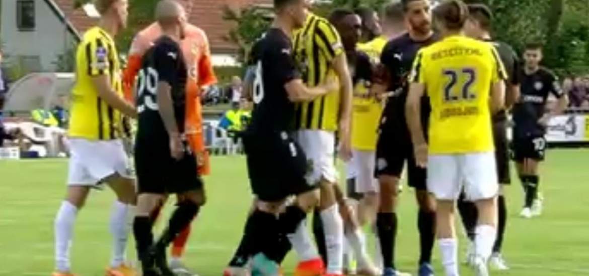 ΒΙΝΤΕΟ – Σύρραξη στο Φίτεσε – ΟΦΗ… 26/07/2022 Το παιχνίδι μεταξύ του ΟΦΗ και της Φίτεσε στην Ολλανδία, τρίτο κατά σειρά για την ομάδα του Νίκου Νιόπλια επί ολλανδικού εδάφους μετά από εκείνα με Ουτρέχτη και Εξέλσιορ, ήταν φιλικού χαρακτήρα, με τους παίκτες όμως των δύο ομάδων να δείχνουν με τη συμπεριφορά τους πως δεν το αντιμετώπισαν έτσι. Με τη συμπλήρωση του ημιώρου άναψαν τα αίματα με κάποιο δυνατό μαρκάρισμα σε παίκτη του ΟΦΗ, ενώ στο 41ο λεπτό η κατάσταση ξέφυγε, με τον Χουάν Νέιρα να κάνει ένα δυνατό μαρκάρισμα με τα δύο πόδια από πίσω πάνω στον Μάνχουφ και να ακολουθεί γενικευμένη σύρραξη. Ο παίκτης σηκώθηκε οργισμένος από το χορτάρι για να “ζητήσει το λόγο” από τον ποδοσφαιριστή των Κρητικών και στον καυγά ενεπλάκησαν και άλλοι παίκτες, με τον διαιτητή να μη έχει άλλη επιλογή από το να δείξει απευθείας κόκκινη κάρτα στον Αργεντινό και να ηρεμούν έτσι τα πνεύματα, λίγο πριν το φινάλε του πρώτου μέρους. ΔΙΑΒΑΣΤΕ ΕΠΙΣΗΣ