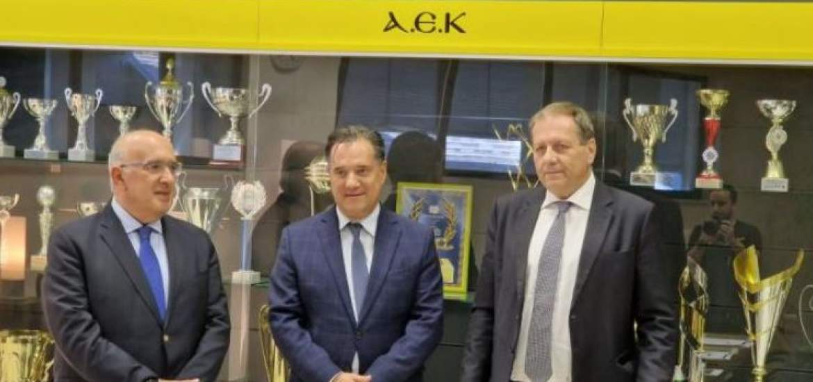Το Olympic Hall των Άνω Λιοσίων επισκέφτηκαν σήμερα ο υπουργός Ανάπτυξης και Επενδύσεων, Άδωνις Γεωργιάδης και ο υφυπουργός Υποδομών και Μεταφορών, Μιχαήλ Παπαδόπουλος, οι οποίοι συνομίλησαν με τον ιδιοκτήτη της ΚΑΕ ΑΕΚ, Μάκη Αγγελόπουλο.