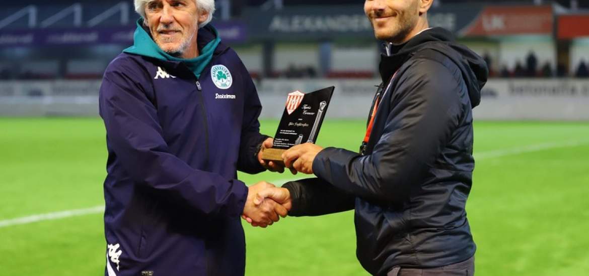 Η Νέα Σαλαμίνα βράβευσε τον Ιβάν Γιοβάνοβιτς (ΦΩΤΟ) 07/12/2022 Την προετοιμασία του ενόψει της επανέναρξης της Super League 1 πραγματοποιεί στην Κύπρο ο Παναθηναϊκός, με τους Κύπριους να έχουν σε τεράστια εκτίμηση τον τεχνικό των «πράσινων», Ιβάν Γιοβάνοβιτς. Μάλιστα, πριν ξεκινήσει το φιλικό ματς του Παναθηναϊκού με τη Νέα Σαλαμίνα, ο Σέρβος προπονητής βραβεύτηκε από την κυπριακή ομάδα για τη συνεισφορά του στο ποδόσφαιρο. Δείτε εδώ φωτογραφίες από τη βράβευση: ΔΙΑΒΑΣΤΕ ΕΠΙΣΗΣ