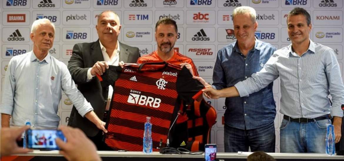 Επίσημο! Στη Φλαμένγκο ο Βίτορ Περέιρα (ΦΩΤΟ) 03/01/2023 Προπονητής της Φλαμένγκο με κάθε επισημότητα είναι πλέον ο Βίτορ Περέιρα. Ο 54χρονος Πορτογάλος τεχνικός, μετά από την περιπέτεια του στην Κορίνθιανς από την οποία και απολύθηκε την παραμονή της Πρωτοχρονιάς, παρουσιάστηκε από τoυς «ρούμπρο νέγκρο» στων οποίων τον πάγκο θα κάθεται για τα επόμενα δύο χρόνια. Ο πρώην προπονητής του Ολυμπιακού, κατά την παρουσίαση του από τον ιδιοκτήτη και τον τεχνικό διευθυντή του συλλόγου, φόρεσε και την φανέλα της ομάδας ποζάροντας στο φωτογραφικό φακό. ΔΙΑΒΑΣΤΕ ΕΠΙΣΗΣ