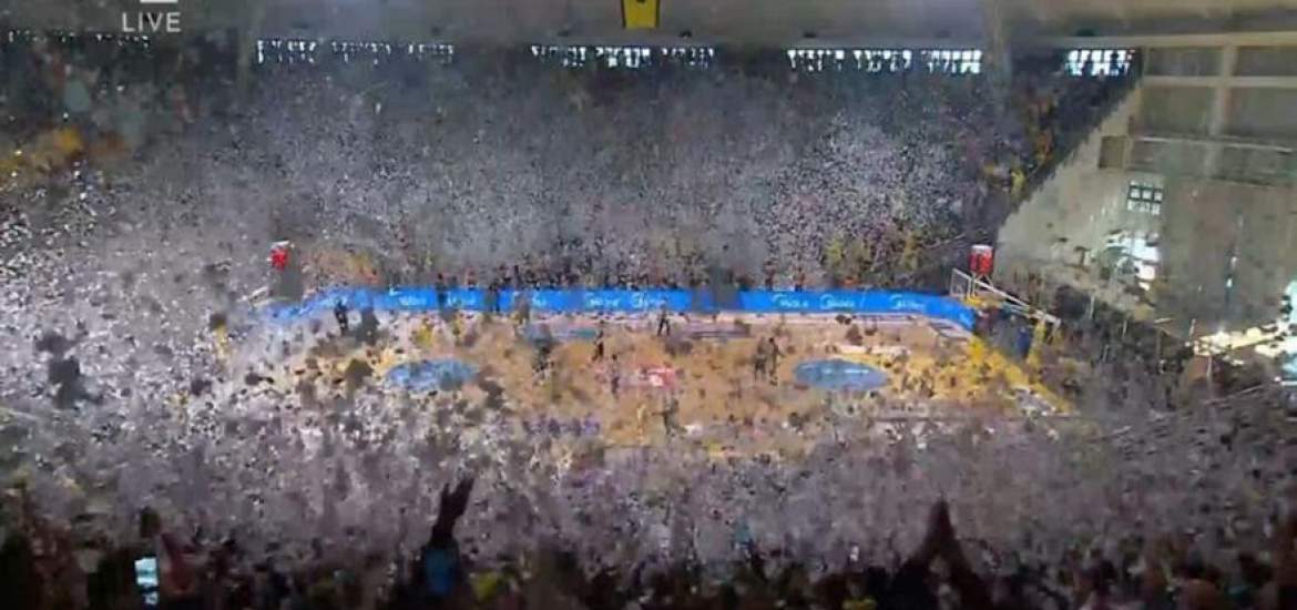 Οι οπαδοί του Άρη, δημιούργησαν μια συγκλονιστική ατμόσφαιρα στο «Αλεξάνδρειο» στο ματς με τον ΠΑΟΚ, πετώντας χιλιάδες χαρτάκια στο παρκέ λίγο πριν το πρώτο τζάμπολ.