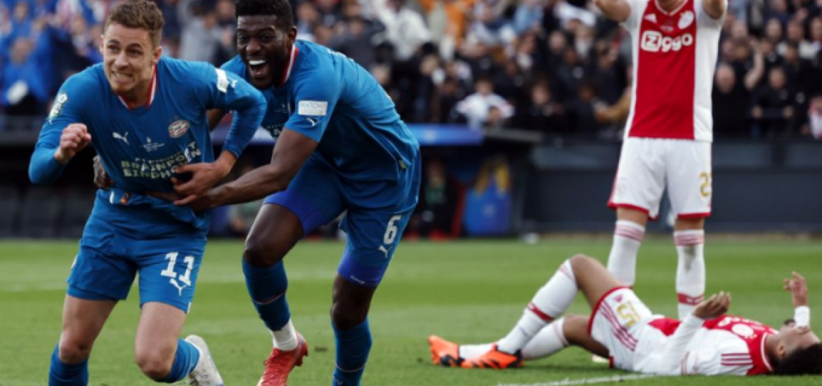 Κυπελλούχος Ολλανδίας η Αϊντχόφεν στο θρίλερ με τον Άγιαξ! 30/04/2023 Η Αϊντχόφεν χρειάστηκε την διαδικασία των πέναλτι για να κατακτήσει το Κύπελλο Ολλανδίας σε έναν συγκλονιστικό τελικό απέναντι στον Άγιαξ. Το 11ο κύπελλο Ολλανδίας στην ιστορία του και δεύτερο συνεχόμενο πανηγύρισε η Αϊντχόφεν στον συγκλονιστικό τελικό του Ντε Κάιπ απέναντι στον Άγιαξ, που θα τελειώσει άτιτλος την φετινή του σεζόν. Ο Αίαντας προηγήθηκε στο πρώτο μέρος από αυτογκόλ του Μπρέιθγουεϊτ, ωστόσο στην επανάληψη κλείστηκε αρκετά και δέχθηκε το γκολ ισοφάρισης από τον Τοργκάν Αζάρ (67’). Το 1-1 δεν άλλαξε ούτε στην κανονική διάρκεια, ούτε στην παράταση με αποτέλεσμα να οδηγηθούμε στα πέναλτι. Εκεί, ο Μπρόμπεϊ και ο Τίμπερ αστόχησαν για τον Άγιαξ, ο Ντρόμελ απέκρουσε την εκτέλεση του Έντσο Άλβαρες και με σκορ 3-2, η PSV έφτασε στην κούπα. ΔΙΑΒΑΣΤΕ ΕΠΙΣΗΣ