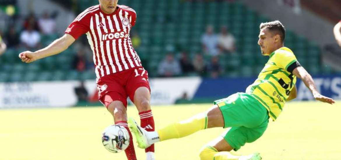 Από μακρινό σουτ του ΜακΛιν η μπάλα κόντραρε στον Μπουχαλάκη, άλλαξε πορεία και η Νόριτς κάνει το 1-0 απέναντι στον Ολυμπιακό στο 24ο λεπτό της φιλικής αναμέτρησης στην Αγγλία.
