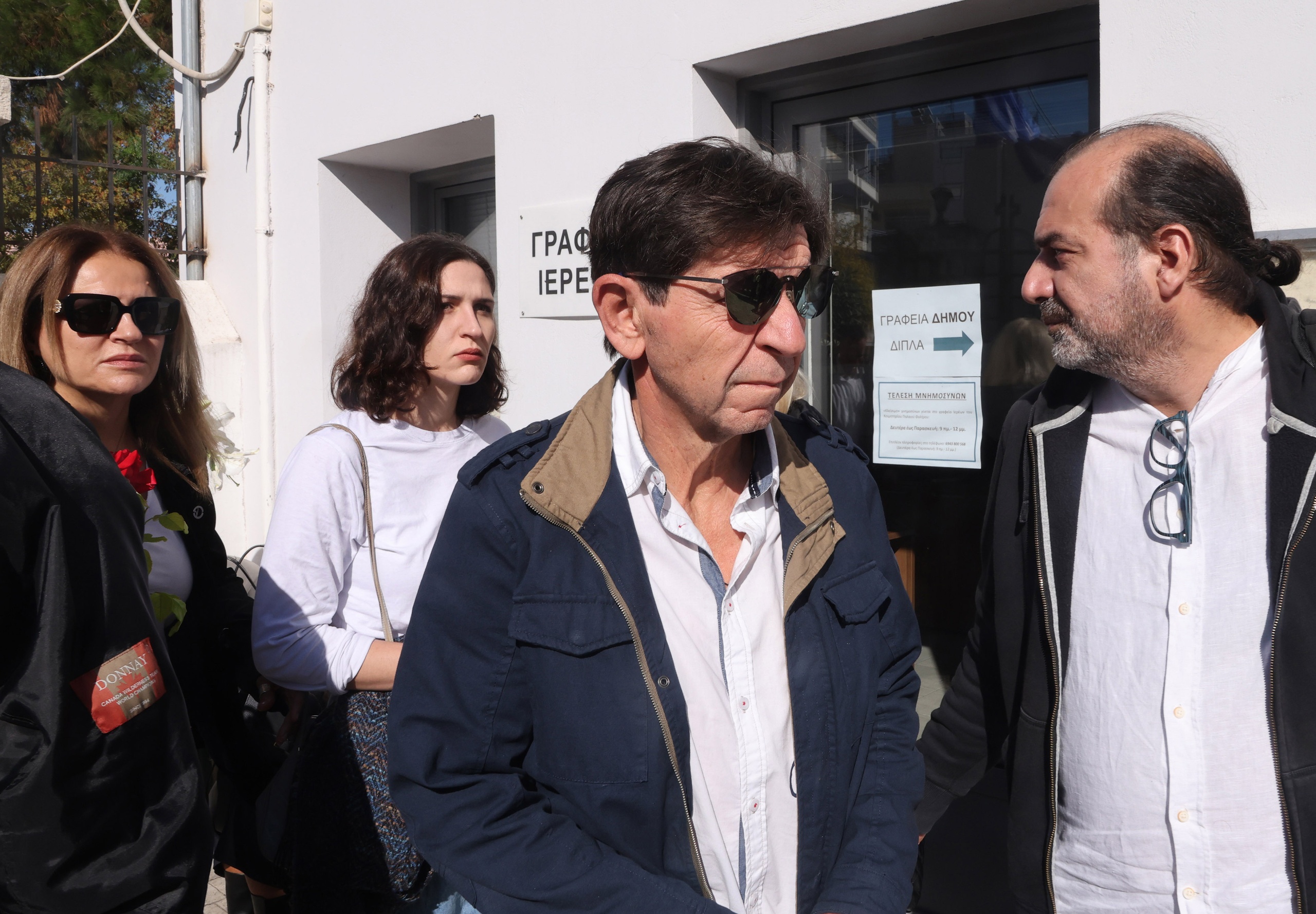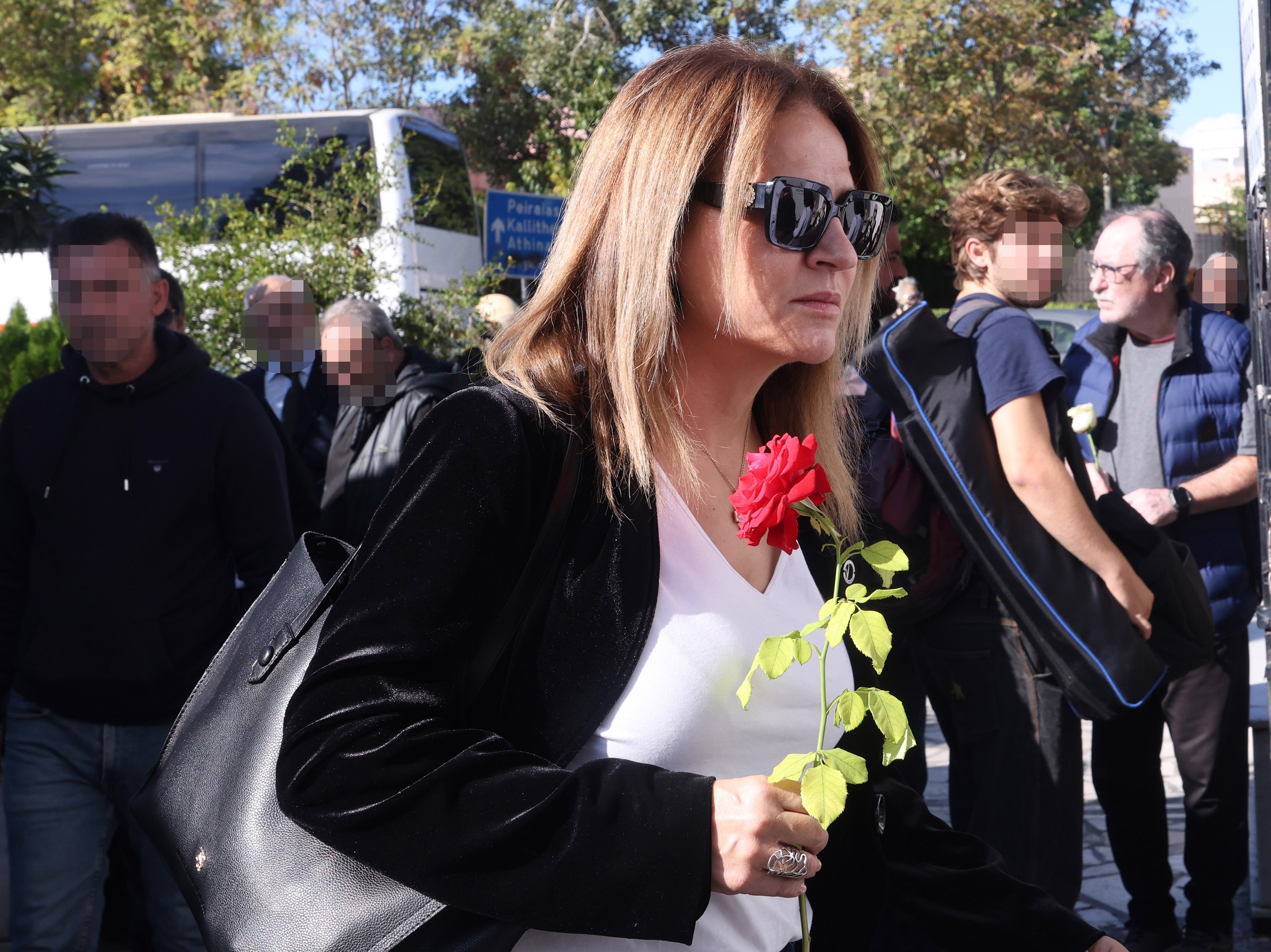 Η Μπέσσυ Μάλφα συνοδευόμενη από τον σύζυγός της, Γεράσιμο Σκιαδαρέση και τη μια της κόρη, την Όλγα, παρευρέθηκε στο τελευταίο “αντίο” στην αδερφική της φίλη.