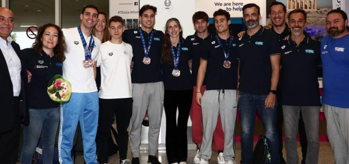 Την αποστολή στο «Ελευθέριος Βενιζέλος» υποδέχθηκε εκ μέρους της Κολυμβητικής Ομοσπονδίας Ελλάδας, ο γενικός γραμματέας Στέφανος Αυγουλέας.
