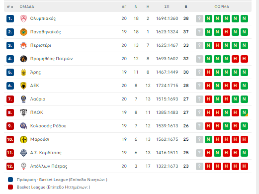 Η βαθμολογία της Basket League