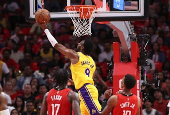 Οι Λος Άντζελες Λέικερς κατάφεραν να πάρουν και το πρώτο ματς στο Χιούστον και έτσι προηγούνται με 3-0 στη σειρά με τους Ρόκετς. Ο Μπρόνι Τζέιμς αγωνίστηκε για μόλις 9:12, ωστόσο κατάφερε να κάνει αισθητή την παρουσία του και στις δύο πλευρές του παρκέ.