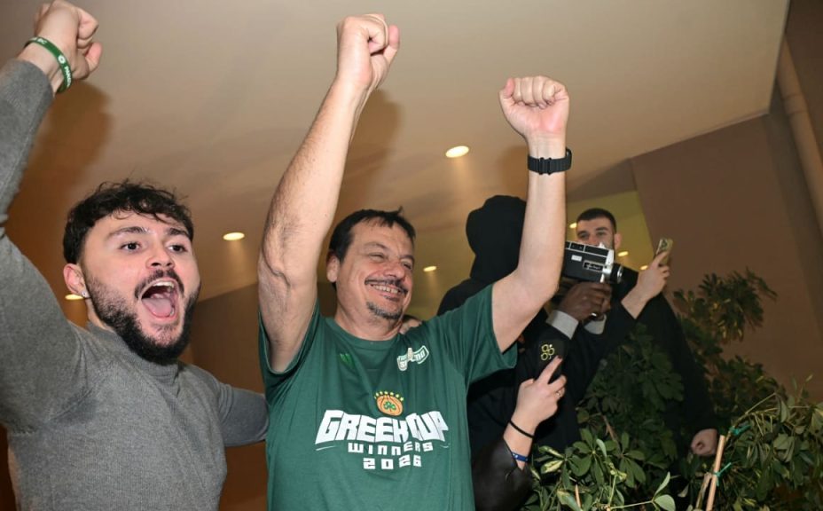 Αποθέωση για τον Παναθηναϊκό στο ξενοδοχείο – Στο μπαλκόνι με υψωμένες γροθιές ο Αταμάν (ΦΩΤΟ) 22/02/2026 Η επιστροφή των Κυπελλούχων Ελλάδας στο ξενοδοχείο εξελίχθηκε σε γιορτή. Δεκάδες φίλοι του Παναθηναϊκού συγκεντρώθηκαν για να υποδεχθούν την αποστολή, λίγες ώρες μετά τη νίκη με 79-68 επί του Ολυμπιακού στον τελικό του Allwyn Final 8. Το κλίμα ήταν πανηγυρικό από την πρώτη στιγμή. Συνθήματα, χειροκροτήματα και καπνογόνα συνέθεσαν μια εικόνα ενθουσιασμού, με τον κόσμο να τραγουδά ασταμάτητα για την κατάκτηση του 22ου Κυπέλλου και δεύτερου διαδοχικού. Στο επίκεντρο βρέθηκε ο Εργκίν Αταμάν. Ο προπονητής του «τριφυλλιού» βγήκε στο μπαλκόνι και, ακούγοντας ρυθμικά το όνομά του, ύψωσε τις γροθιές του προς τον κόσμο, σε μια κίνηση που έχει πλέον ταυτιστεί με τις επιτυχίες της ομάδας. Λίγο αργότερα, όταν οι παίκτες εμφανίστηκαν, η ένταση των πανηγυρισμών ανέβηκε ακόμη περισσότερο, με τους οπαδούς να αποθεώνουν την αποστολή και να γιορτάζουν μια ακόμη μεγάλη στιγμή της σεζόν. ΔΙΑΒΑΣΤΕ ΕΠΙΣΗΣ