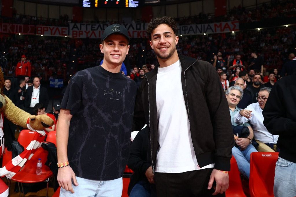 Οι δύο νεαροί ποδοσφαιριστές κάθισαν στις εξέδρες του ΣΕΦ για να στηρίξουν την μπασκετική ομάδα του συλλόγου. Μάλιστα, όταν η κάμερα του γηπέδου εντόπισε τον Μουζακίτη και η εικόνα του προβλήθηκε στα μάτριξ, ο κόσμος του Ολυμπιακού αντέδρασε με έντονο χειροκρότημα και αποθέωση.