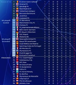 Champions League: Αποτελέσματα, πρόγραμμα και βαθμολογία της League Phase 17/09/2025 Η πρεμιέρα της League Phase του Champions League πρόσφερε έντονες συγκινήσεις, αλλά και εκπλήξεις. Ξεχώρισαν η ιστορική νίκη της Σεν Ζιλουάζ στην Ολλανδία, η απίθανη ανατροπή της Καραμπάγκ στη Λισαβόνα και ματσάρα στο Τορίνο ανάμεσα σε Γιουβέντους και Ντόρτμουντ (4-4). Η Σεν Ζιλουάζ έγραψε ιστορία, καθώς στην πρώτη της συμμετοχή στη διοργάνωση πέρασε θριαμβευτικά από την έδρα της Αϊντχόφεν, επικρατώντας 1-3 με εξαιρετική εμφάνιση. Την ίδια στιγμή, η Καραμπάγκ έκανε μία απίθανη ανατροπή. Παρότι βρέθηκε πίσω με 2-0 απέναντι στη Μπενφίκα στο «Ντα Λουζ», πήρε τεράστια νίκη με 2-3. Γιουβέντους και Ντόρτμουντ αναδείχθηκαν ισόπαλες με το χορταστικό 4-4 σε ένα απίθανο ματς στο Τορίνο, ενώ η Τότεναμ μπήκε με το δεξί καταβάλλοντας με 1-0 τη Βιγιαρεάλ. Η Μαρσέιγ δεν κατάφερε να φύγει όρθια από το Σαντιάγκο Μπερναμπέου κόντρα στη Ρεάλ Μαδρίτης, γνωρίζοντας την ήττα με 2-1. Με τα αποτελέσματα της Τρίτης ολοκληρώθηκε το πρώτο σετ αγώνων της πρεμιέρας, με το υπόλοιπο πρόγραμμα να συνεχίζεται την Τετάρτη. Η βαθμολογία αρχίζει ήδη να σχηματίζεται, δείχνοντας από νωρίς ότι η νέα μορφή της διοργάνωσης θα είναι γεμάτη ανατροπές και αμφίρροπες μάχες. Η βαθμολογία: Τα αποτελέσματα και το πρόγραμμα της πρεμιέρας: Τρίτη 16 Σεπτεμβρίου Μπιλμπάο-Άρσεναλ 0-2 Αϊντχόφεν-Ουνιόν Σεν Ζιλουάζ 1-3 Γιουβέντους-Ντόρτμουντ 4-4 Μπενφίκα-Καραμπάγκ 2-3 Ρεάλ Μαδρίτης-Μαρσέιγ 2-1 Τότεναμ-Βιγιαρεάλ 1-0 Τετάρτη 17 Σεπτεμβρίου Ολυμπιακός-Πάφος (19:45) Σλάβια Πράγας-Μπόντο Γκλιμτ (19:45) Άγιαξ-Ίντερ (22:00) Λίβερπουλ-Ατλέτικο Μαδρίτης (22:00) Μπάγερν-Τσέλσι (22:00) Παρί-Αταλάντα (22:00) Πέμπτη 18 Σεπτεμβρίου Κοπεγχάγη-Λεβερκούζεν (19:45) Μπριζ-Μονακό (19:45) Άιντραχτ-Γαλατάσαραϊ (22:00) Μάντσεστερ Σίτι-Νάπολι (22:00) Νιούκαστλ-Μπαρτσελόνα (22:00) Σπόρτινγκ-Καϊράτ (22:00) Η επόμενη (2η) αγωνιστική: Tρίτη 30 Σεπτεμβρίου Αταλάντα-Μπριζ (19:45) Καϊράτ-Ρεάλ Μαδρίτης (19:45) Ατλέτικο Μαδρίτης-Άιντραχτ (22:00) Γαλατάσαραϊ-Λίβερπουλ (22:00) Ίντερ-Σλάβια Πράγας (22:00) Μαρσέιγ-Άγιαξ (22:00) Μπόντο Γκλιμτ-Τότεναμ (22:00) Πάφος-Μπάγερν (22:00) Τσέλσι-Μπενφίκα (22:00) Τετάρτη 1 Οκτωβρίου Καραμπάγκ-Κοπεγχάγη (19:45) Ουνιόν Σεν Ζιλουάζ-Νιούκαστλ (19:45) Άρσεναλ-Ολυμπιακός (22:00) Βιγιαρεάλ-Γιουβέντους (22:00) Μονακό-Μάντσεστερ Σίτι (22:00) Λεβερκούζεν-Αϊντχόφεν (22:00) Μπαρτσελόνα-Παρί (22:00) Ντόρτμουντ-Μπιλμπάο (22:00) Νάπολι-Σπόρτινγκ (22:00) ΔΙΑΒΑΣΤΕ ΕΠΙΣΗΣ